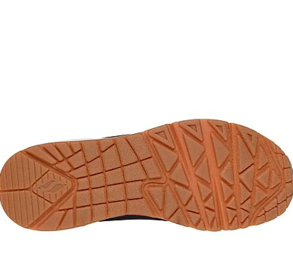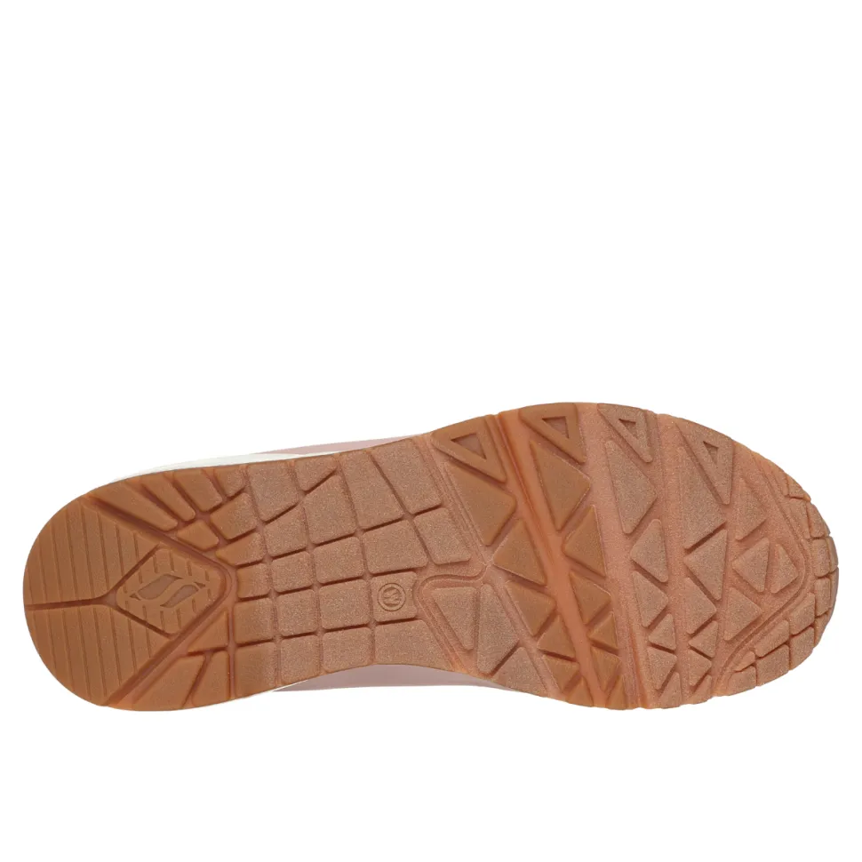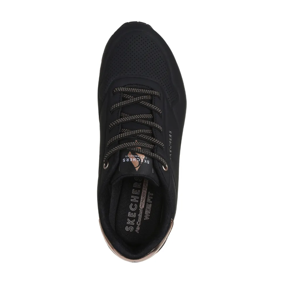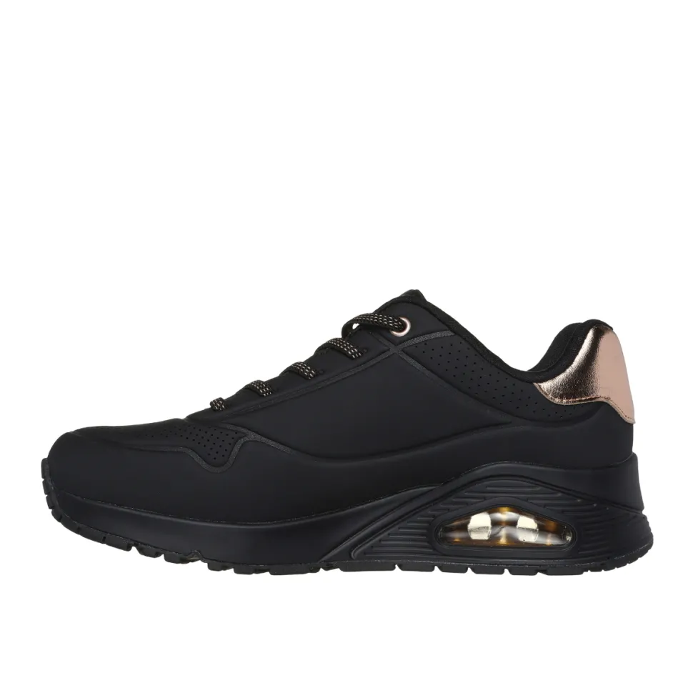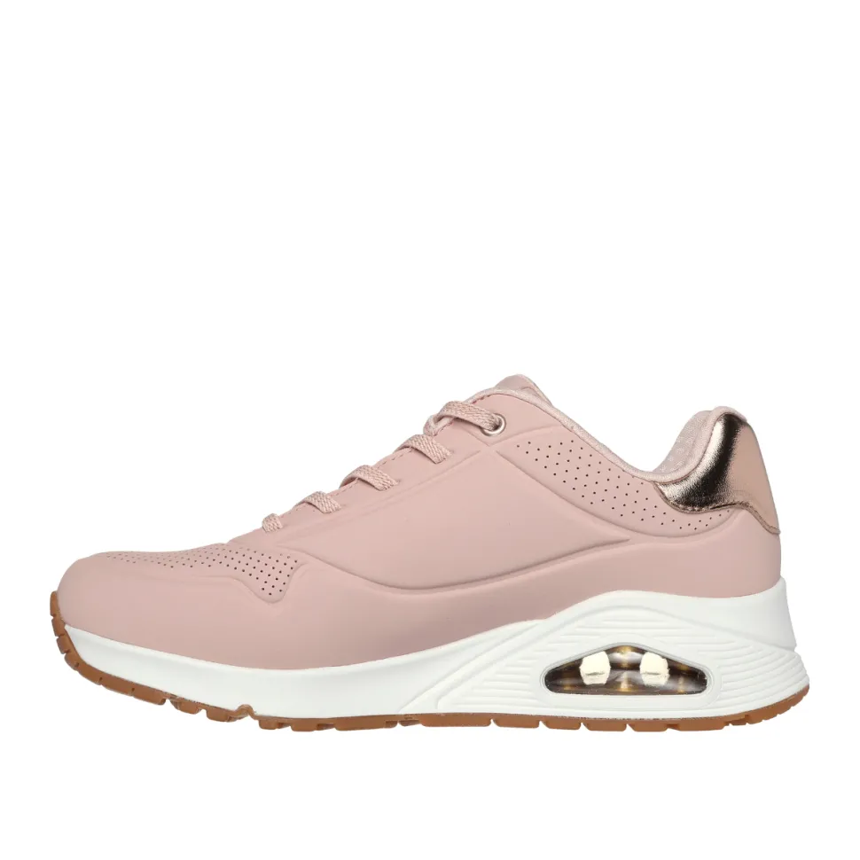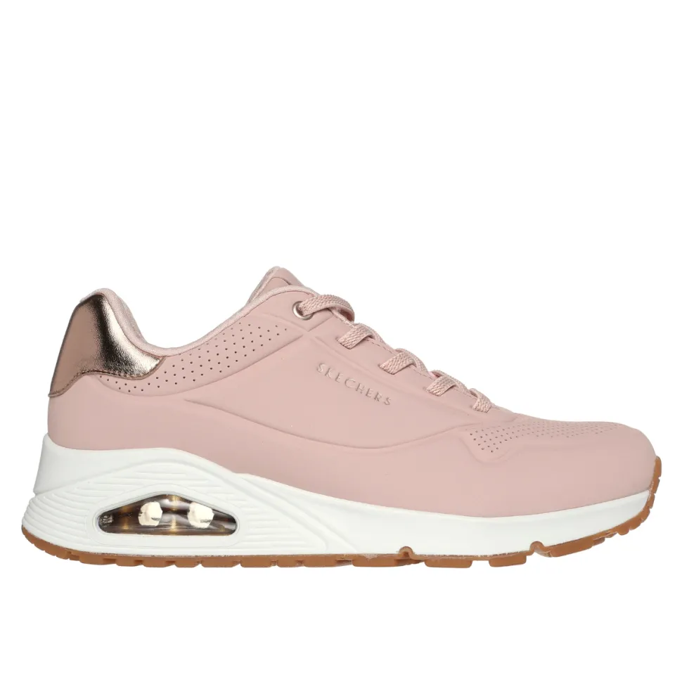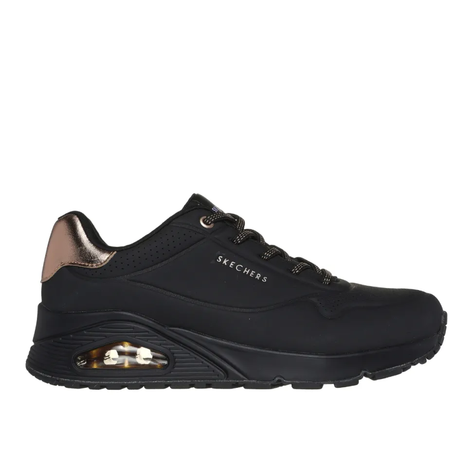 Enjoy classic style this season wearing Skechers Street™ Uno – Shimmer Away. This on-trend sneaker features a synthetic durabuck upper with metallic trim, stretch laces, a Skechers Air-Cooled Memory Foam® insole and a visible Skech-Air® airbag. midsole.