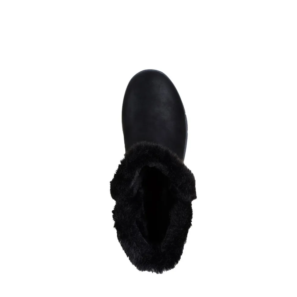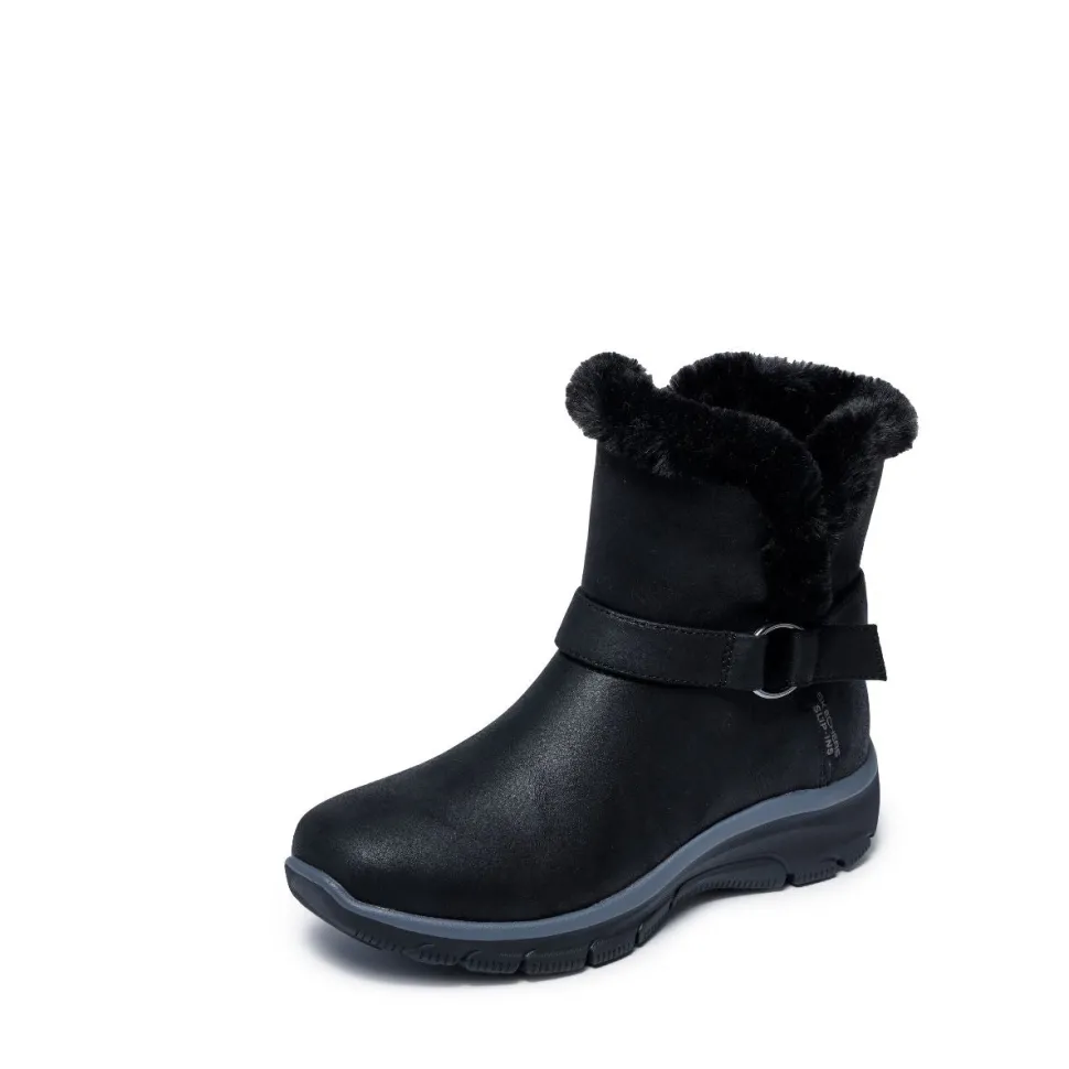Designed with our Heel Pillow® technology, this boot features a vegan leather upper treated with 3M® Scotchgard®, a faux fur collar and lining, wrap-around buckle detail, and a cushioned Skechers Air-Cooled Memory Foam® insole.