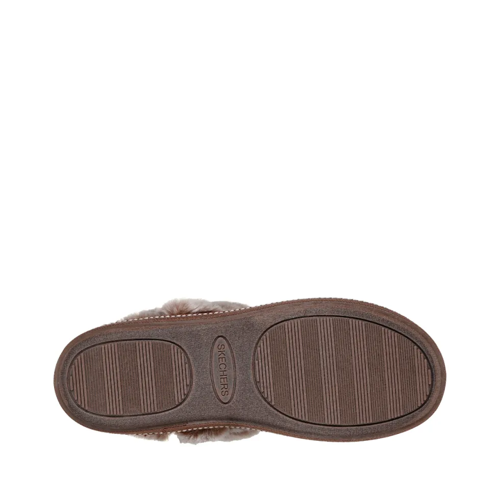 Enjoy cozy, casual comfort all season long with Skechers Cozy Campfire – French Toast 2. This comfortable, casual slipper features a vegan leather upper with faux fur trim and a comfortable Skechers Memory Foam™ cushioned footbed. Vegan leather with faux fur trim and lining