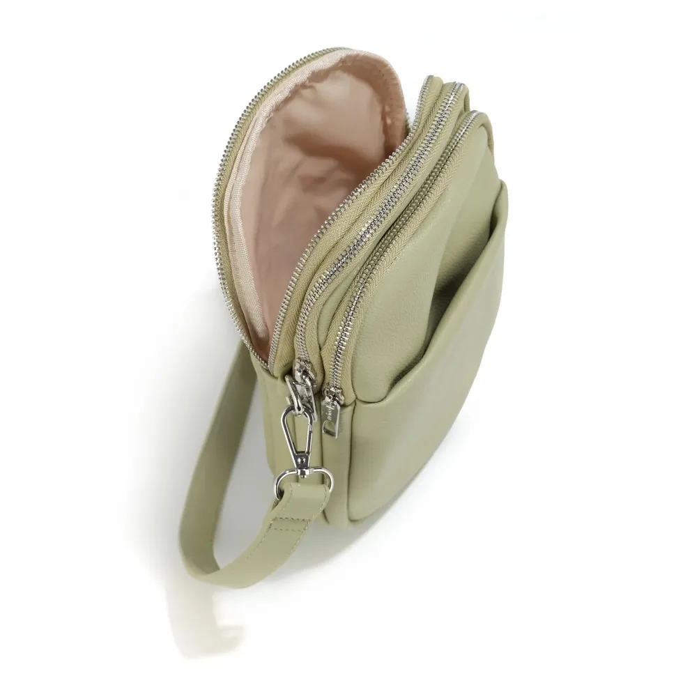 This three-pocket shoulder bag is lightweight and minimally designed to fit most outfits.