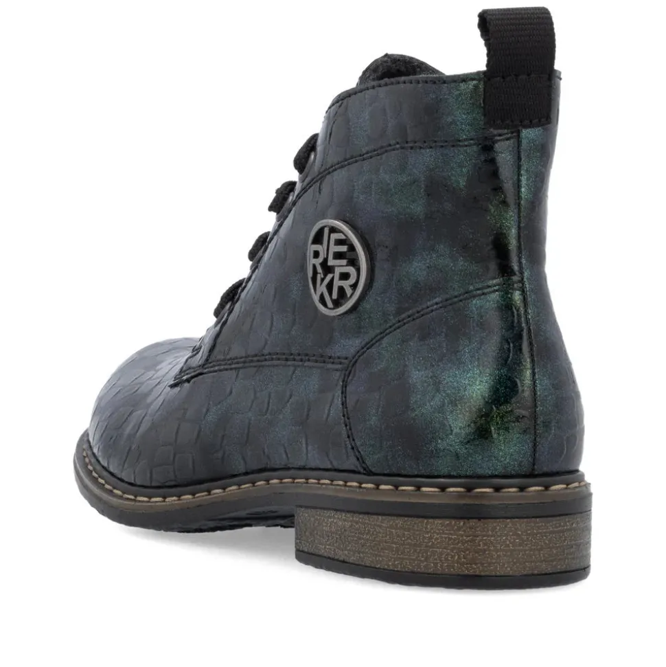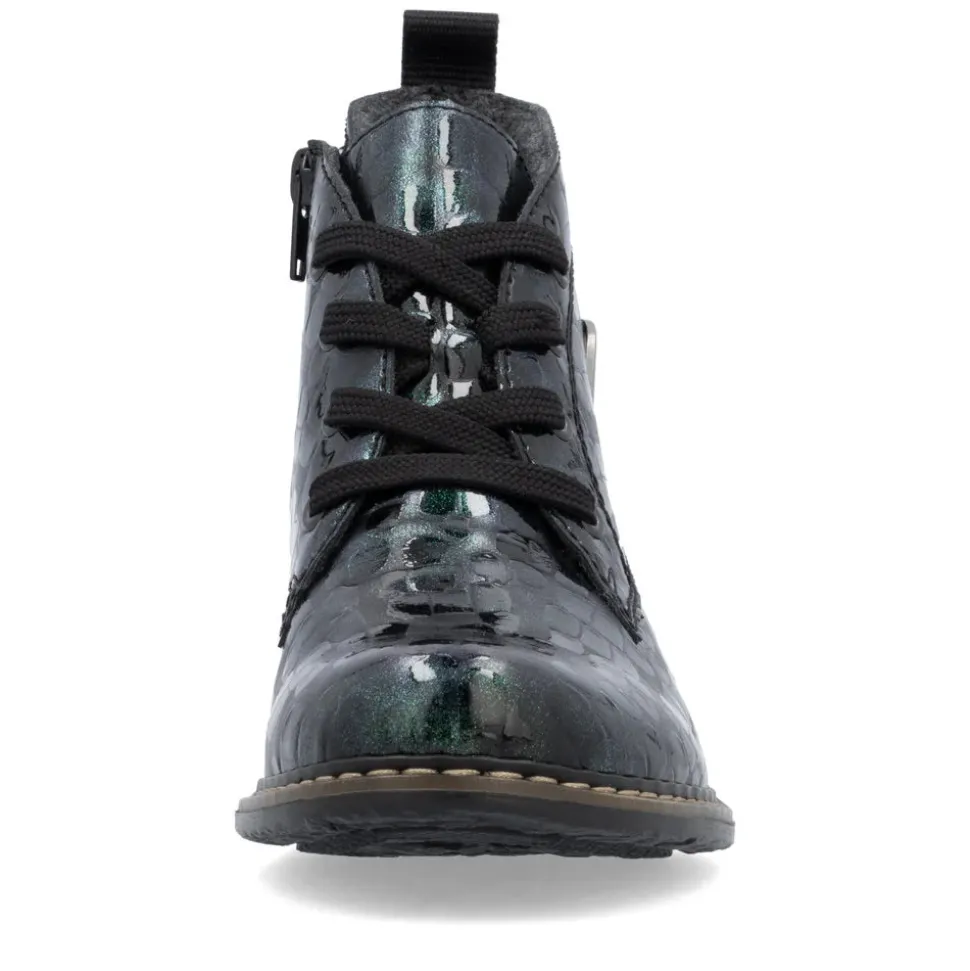 A must-have! These green lace-up ankle boots from Rieker guarantee a casual, on-trend look. Their stitched construction makes the shoe sturdy and the sole particularly flexible. The lacing complements the zipper, guaranteeing optimum support and a perfect fit. The logo on the side is an eye-catcher. Thanks to their lightweight, shock-absorbing sole, your feet will enjoy optimum comfort with every step. Their extra-soft sole is an added bonus. These shoes combine style and comfort to perfection!