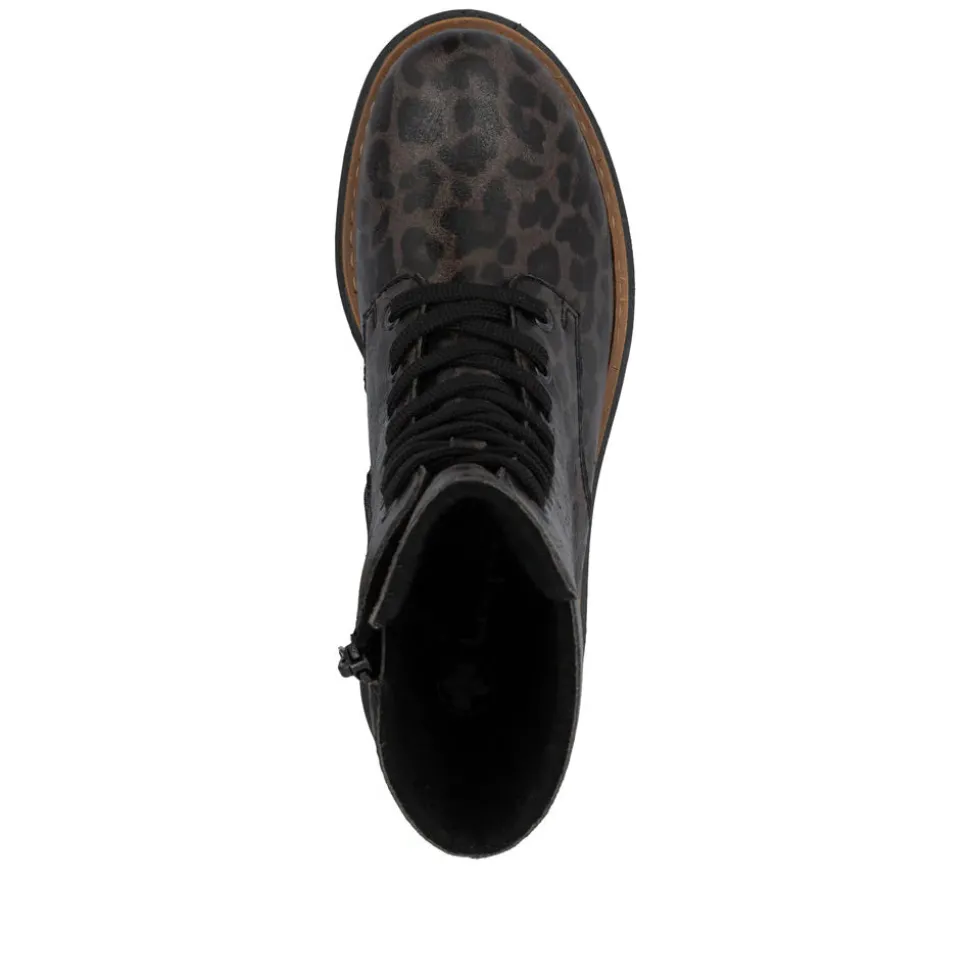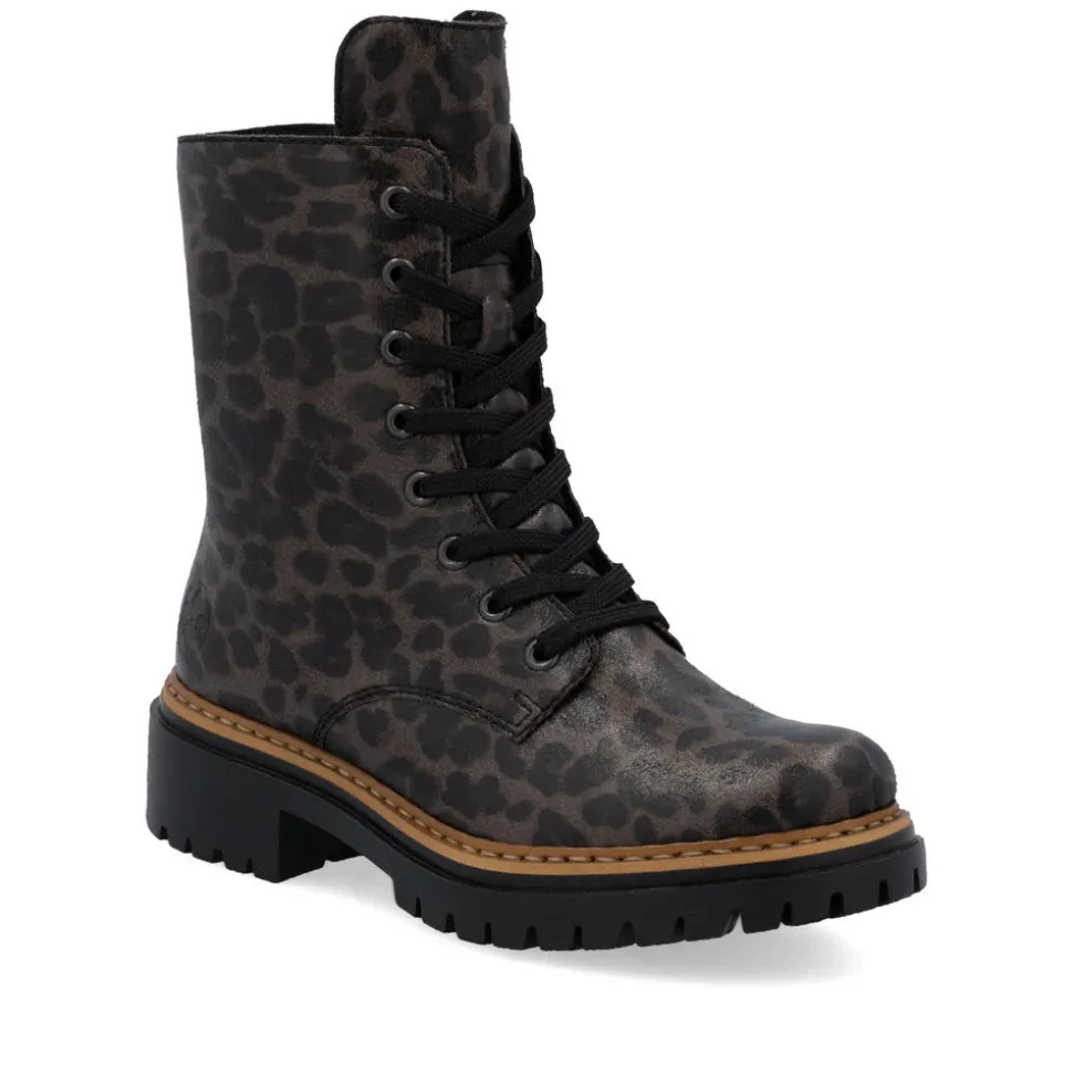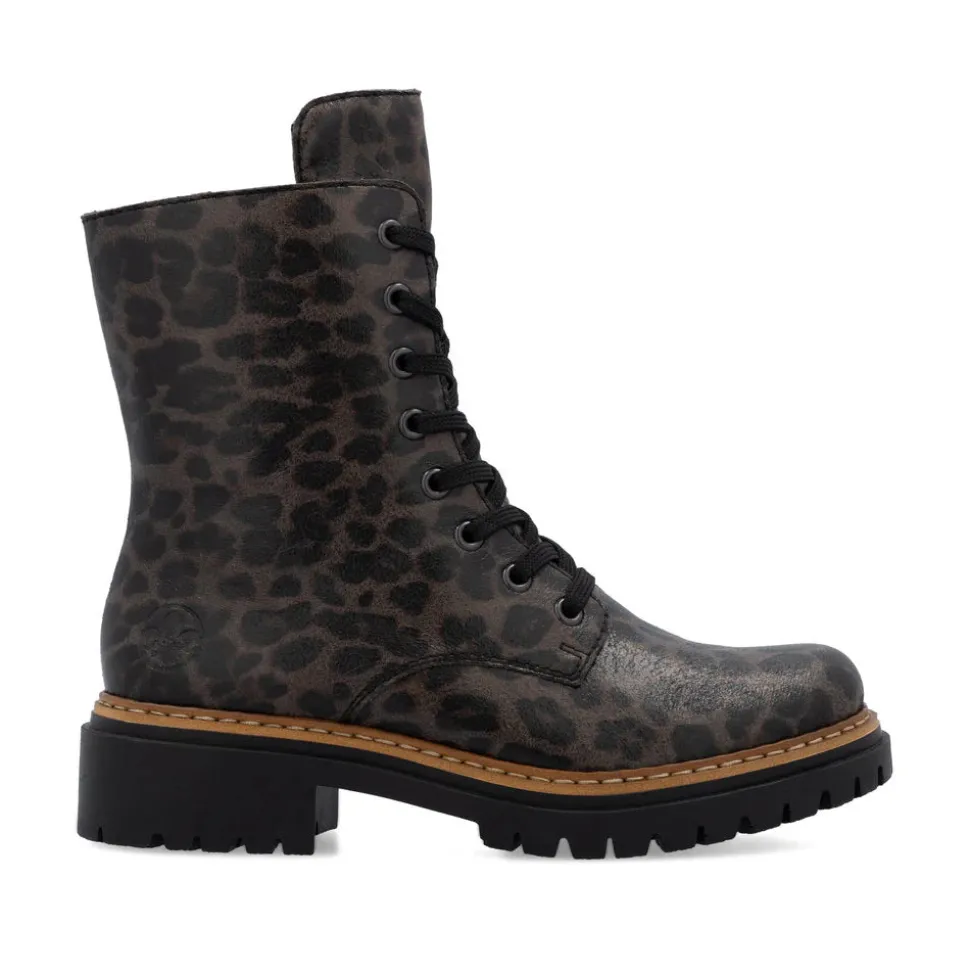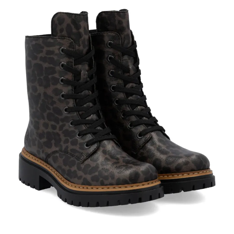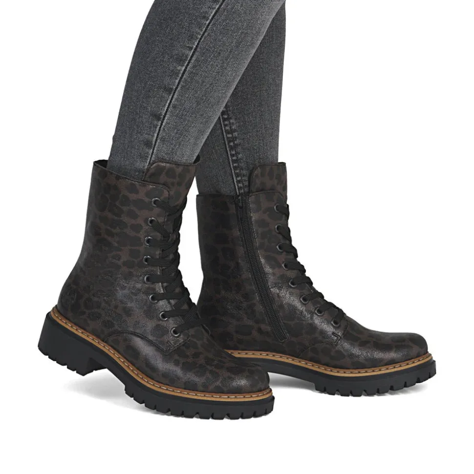 A real favorite! These black and brown Rieker biker boots are a comfortable companion. Made with stitched construction, they are sturdy, flexible and offer a perfect fit. Despite the lacing, the shoe closes easily thanks to the zipper. The leopard print adds a touch of originality. The lightweight, shock-absorbing sole offers double the comfort with every step. Another plus: the extra-soft sole. What more could you ask for!