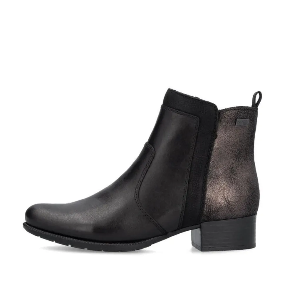 The Rieker 78658 is a chic yet comfortable bootie not to be missed this autumn. The upper is in black leather and has an easy-to-use side zipper for putting on and taking off. The bootie is lined with a short velvet fur lining on the inside to bring a little warmth to cooler days.