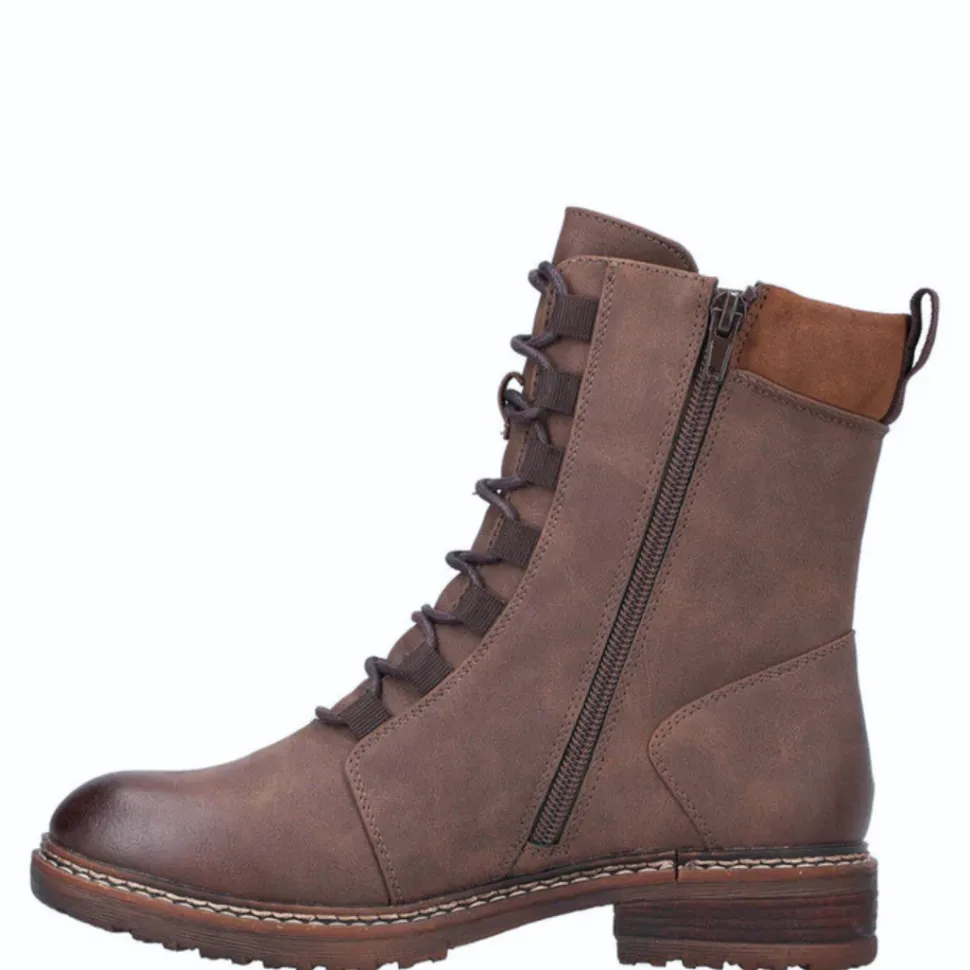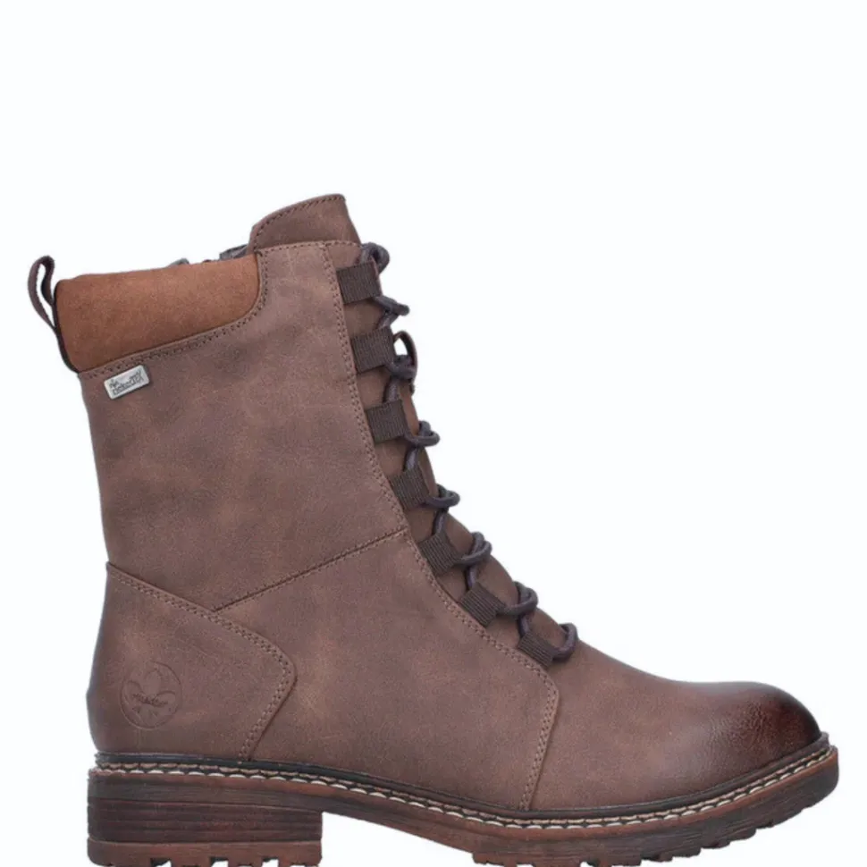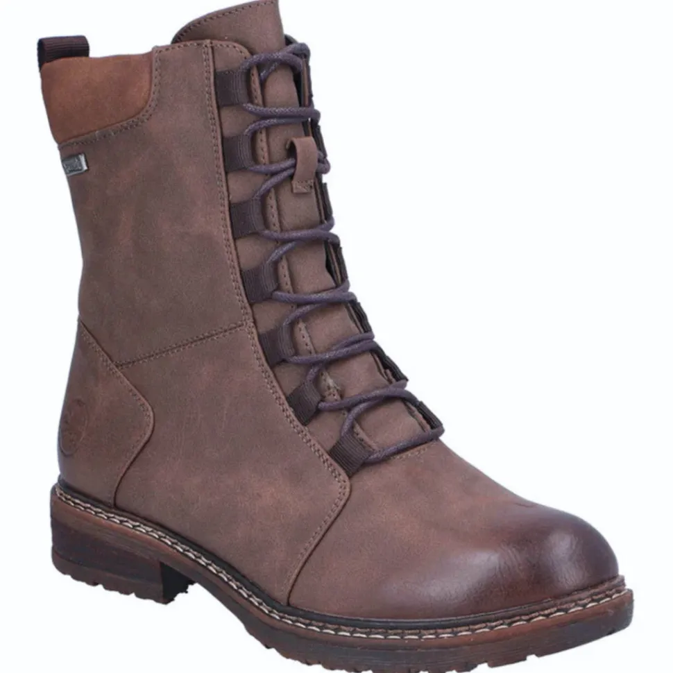 These boots combine style and practicality with front lacing and a side zipper for easy slip-on. Designed with RiekerTex technology, they offer good water resistance, ideal for wet days. Their low block heel and flexible sole provide comfort, stability and a touch of style for everyday wear.