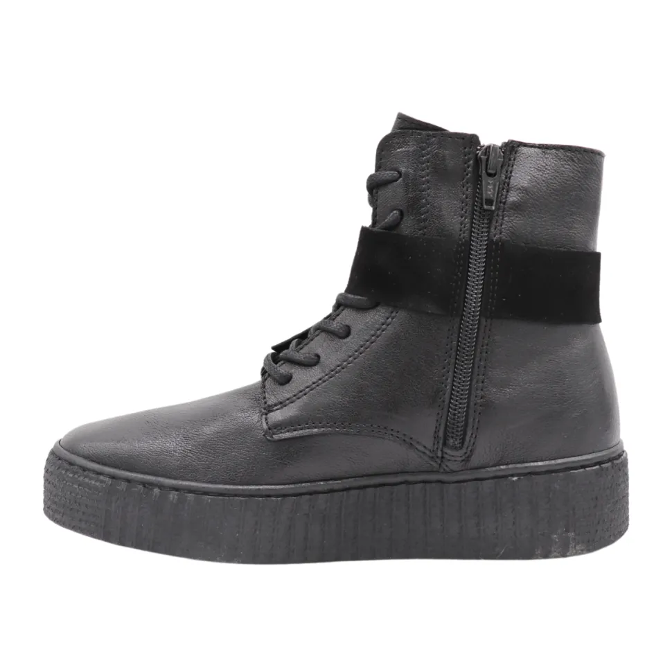 - Leather boots with suede details