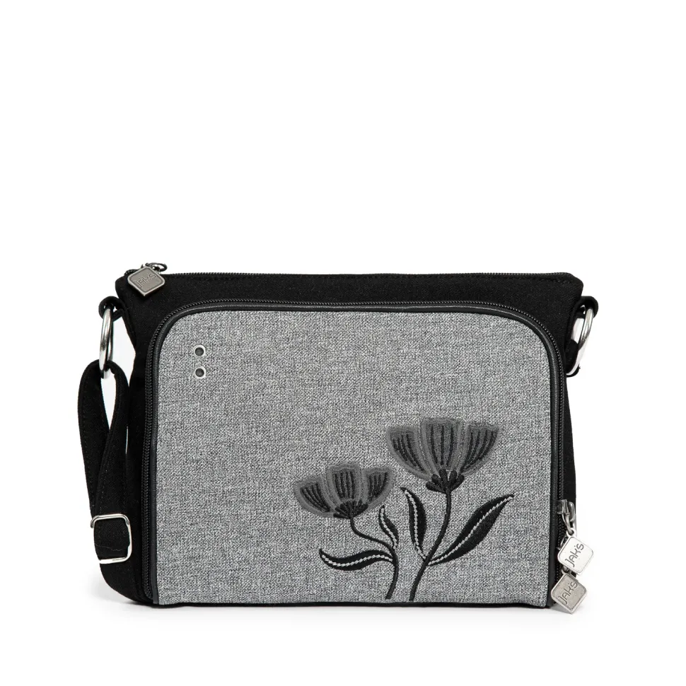 This charming little shoulder bag, embellished with beautiful floral embroidery, is sure to win you over! Its organizer pocket on the front is ideal for storing your cards, change and personal belongings. Despite its compact size, this bag offers ample space for all your essentials.