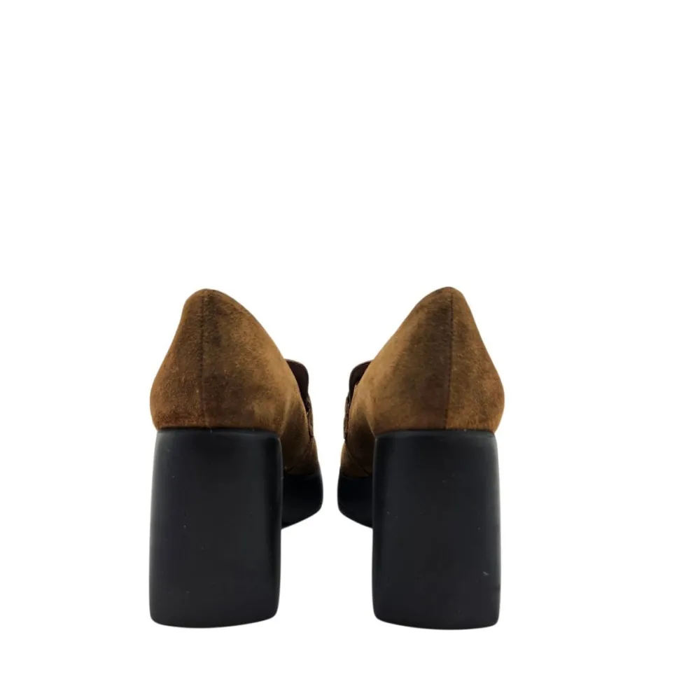 Assert your style with the H-4961 shoe from WONDERS, a shoe that combines retro allure with modernity. Crafted in genuine suede, it features a refined finish and ornamental detailing on the vamp. Its assertive design rests on a thick platform sole and bold block heel, perfect for adding character to any outfit.