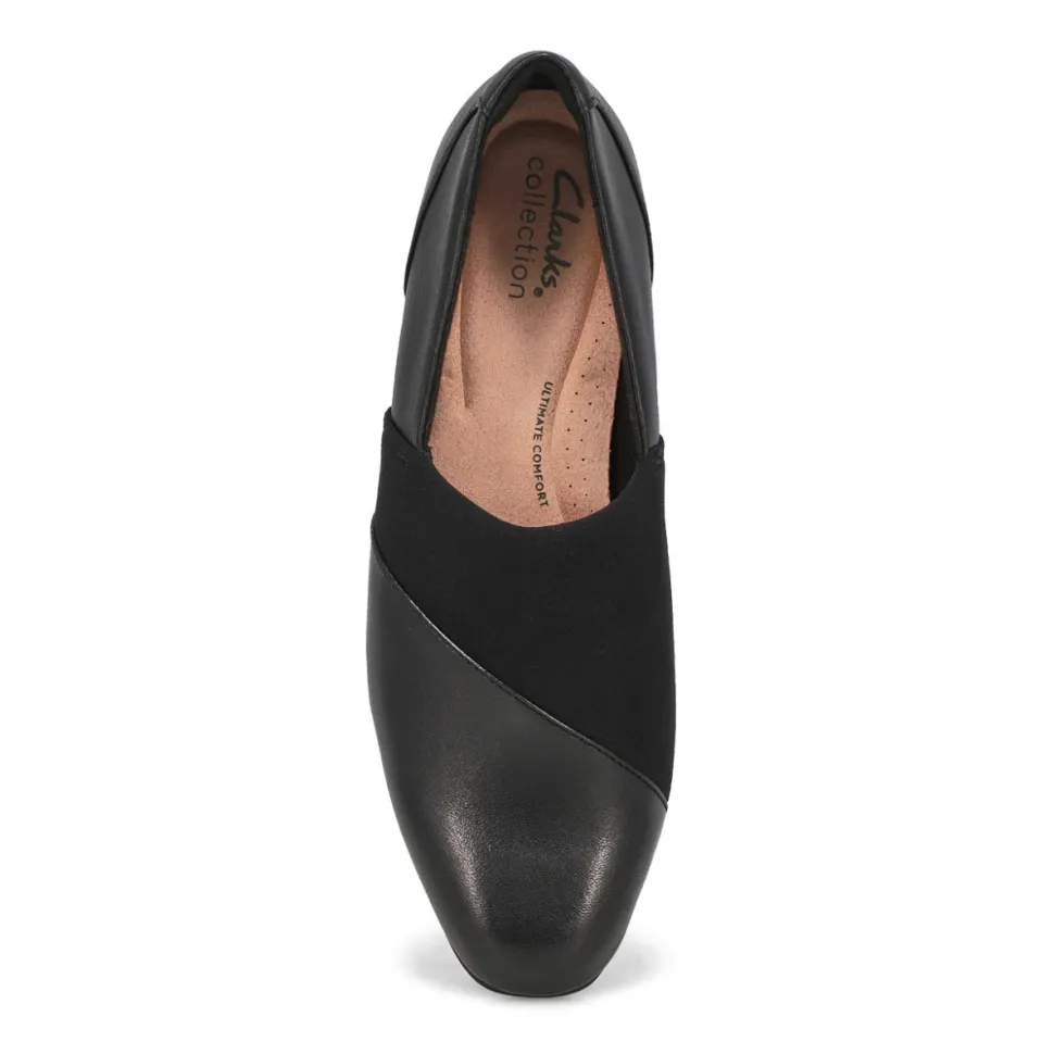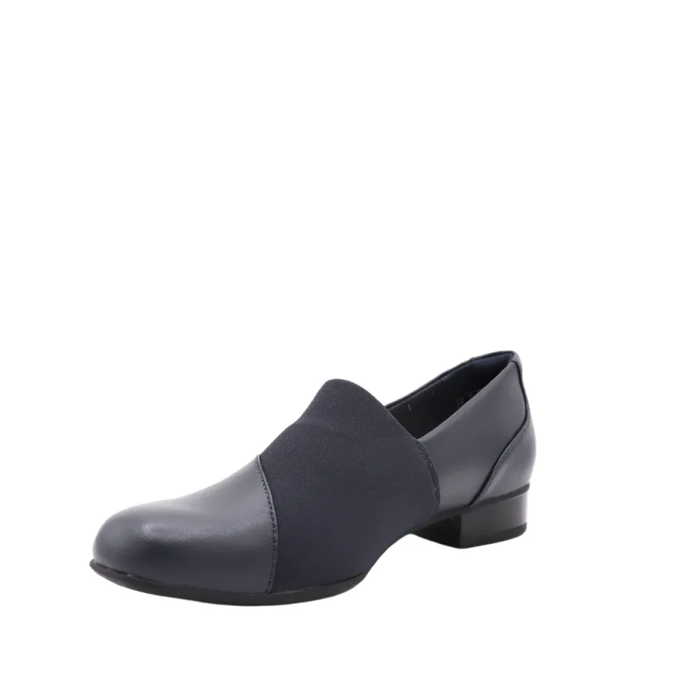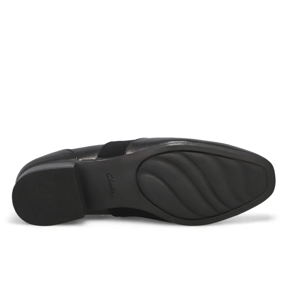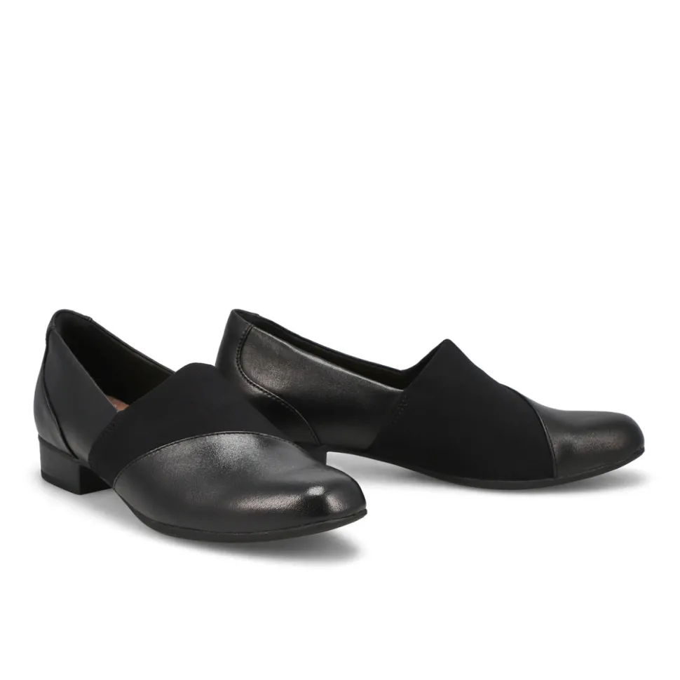 The JULIET GEM slip-on shoe combines premium materials with an ultra-easy-to-wear stacked-effect heel and a host of comfort features. The ultra-soft leather upper is enhanced by stretch panels that perfectly showcase the foot, while Clarks’ signature cushy footbed and ultra-grippy outsole keep feet on the ground from work to weekend.