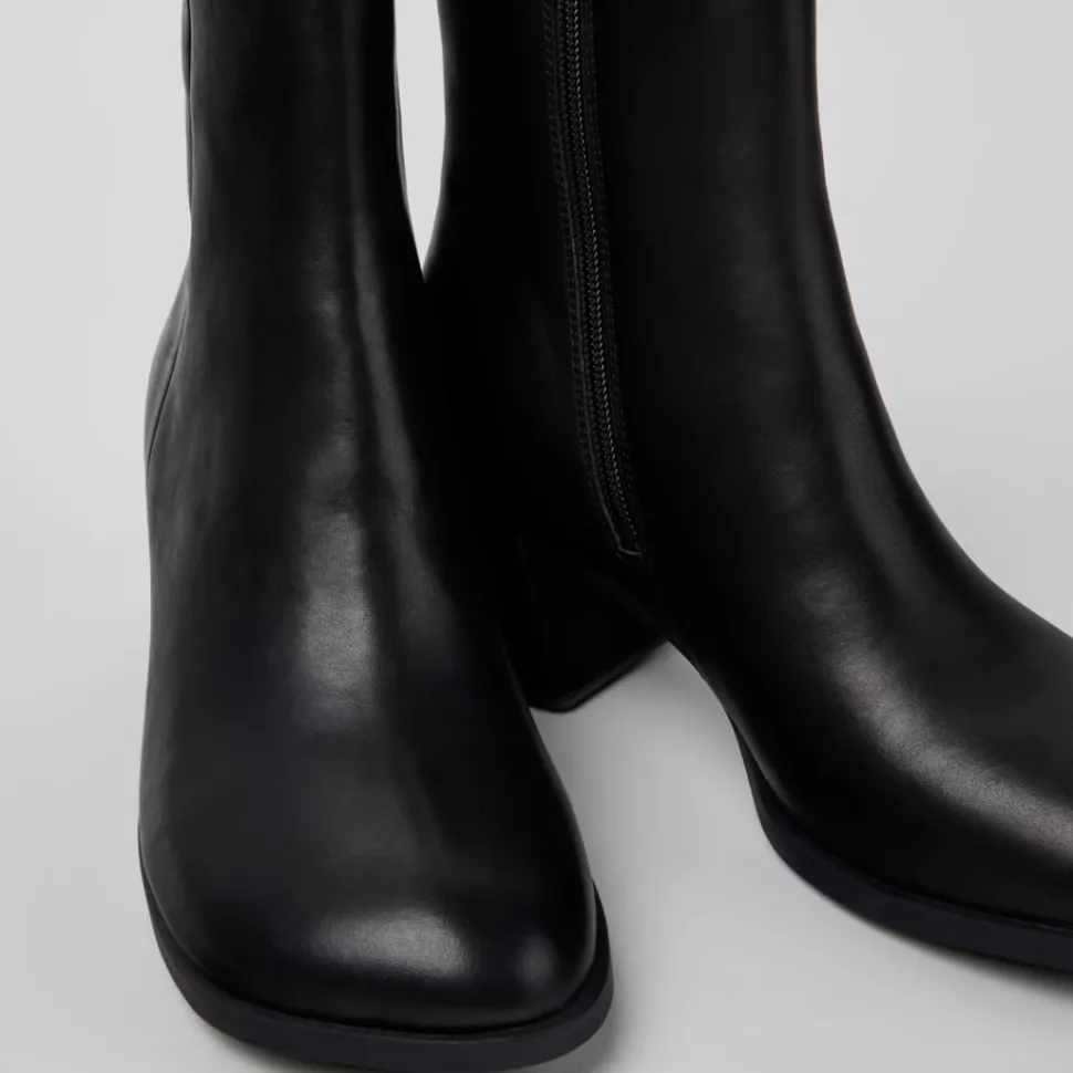 Mid-high boots in black cowhide leather with OrthoLite® Recycled™ insole and rubber and ABS outsole.