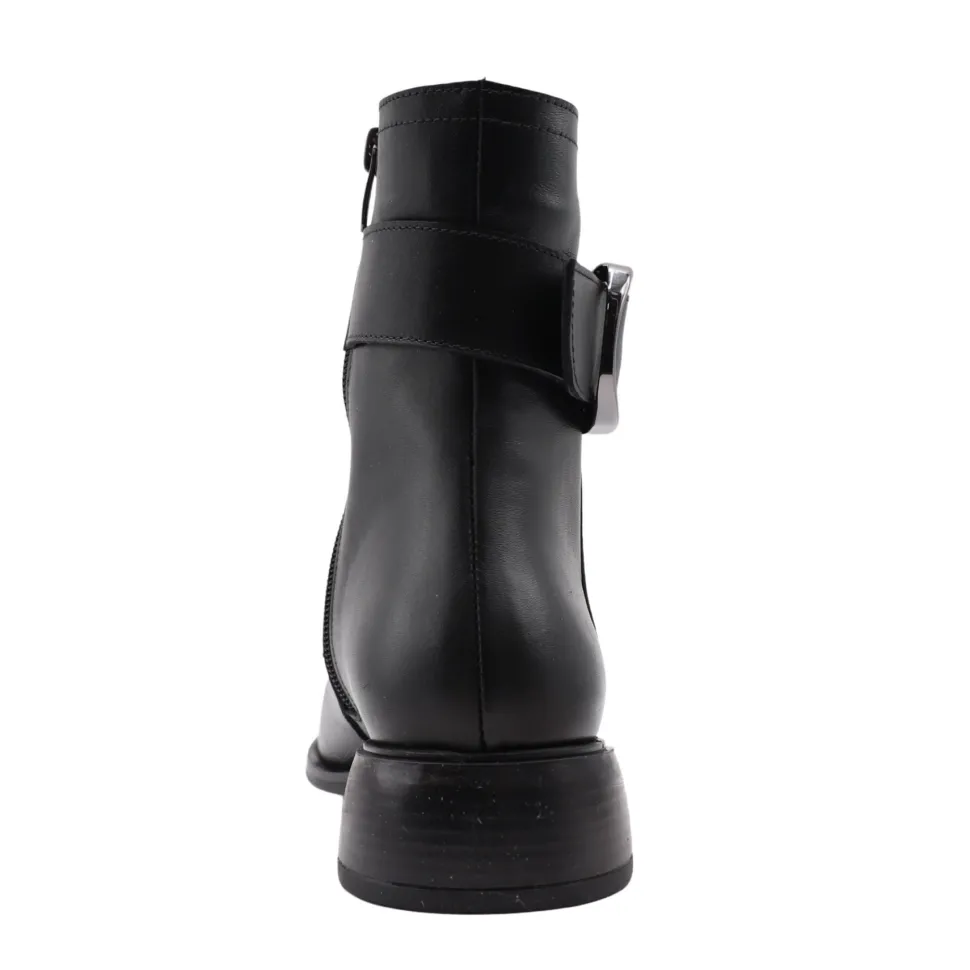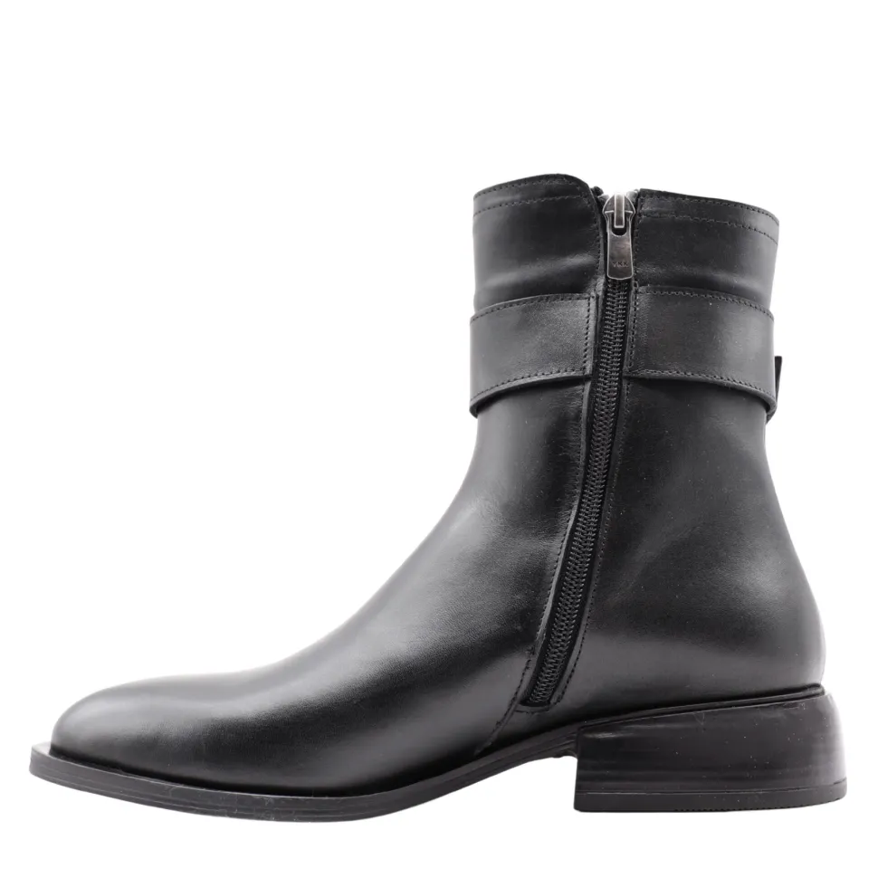 Elegant and timeless, Margot ankle boots by Apropo Margot boots are a seasonal essential. Crafted in genuine leather, they feature a large metal buckle that adds a modern, refined touch to their sleek silhouette. The internal zipper ensures quick slip-on, while their low block heel guarantees optimal everyday comfort.