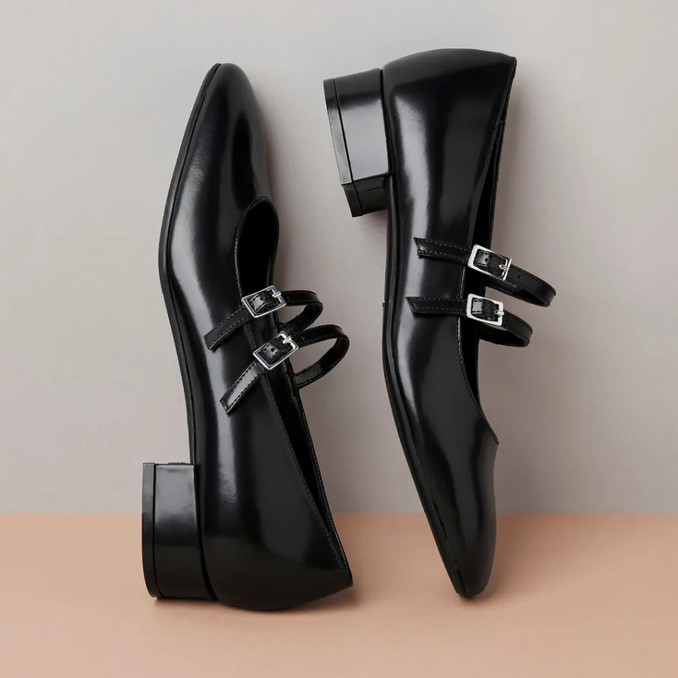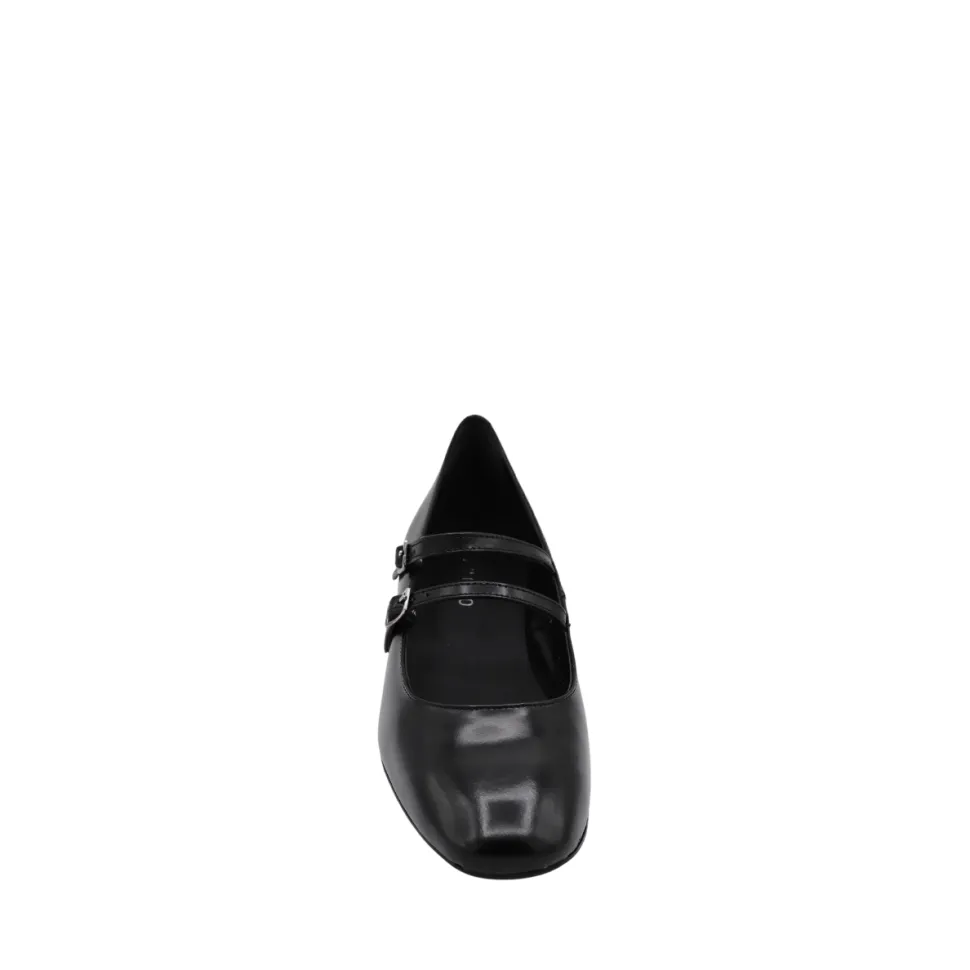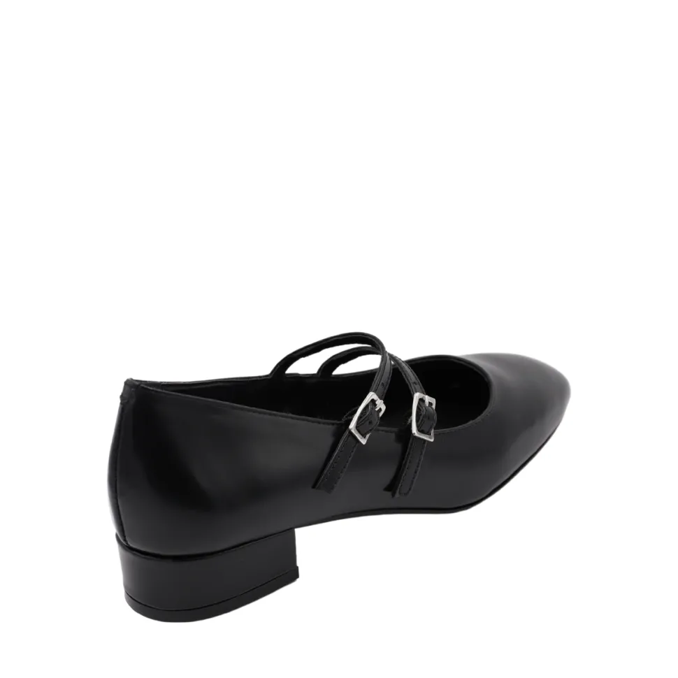 Discover comfort and style with SIMONE! Made from Black leather, this ballerina with a small heel will accompany you on all your adventures. Let yourself be tempted by its unique design and dare to take it on the roads less traveled. Let the simplicity and beauty of leather be your guide.