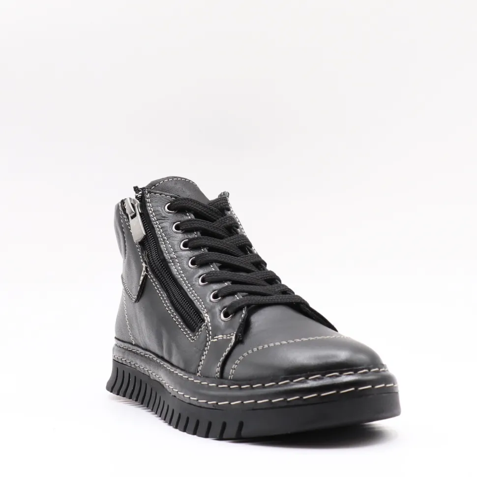 practical. Designed in genuine leather and made in Europe, it offers a casual look with contrasting stitching and a flexible sole with deep grooves for better grip. Featuring a side zipper, they’re easy to slip on for everyday wear. Available in timeless black or natural leather, it’s a versatile shoe that combines style and functionality.