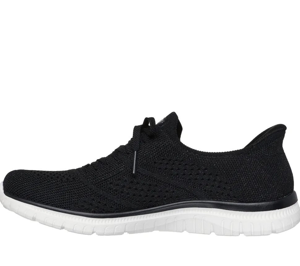 saGlide into absolute comfort with the Skechers Hands Free Slip-ins® : Virtue – Flawless. Designed with our exclusive Heel Pillow™ cushioning, this vegan model offers a Stretch Fit® stretch-knit upper with fixed laces, plus a Skechers Air-Cooled Memory Foam® insole for optimal comfort.