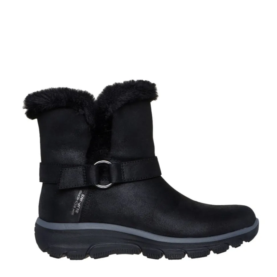 Designed with our Heel Pillow® technology, this boot features a vegan leather upper treated with 3M® Scotchgard®, a faux fur collar and lining, wrap-around buckle detail, and a cushioned Skechers Air-Cooled Memory Foam® insole.