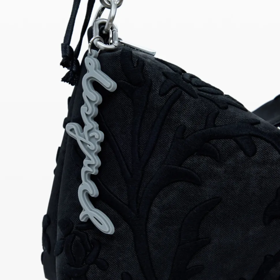 Medium-sized handbag in plain imitation leather, with 3D relief engravings and zip fastening.