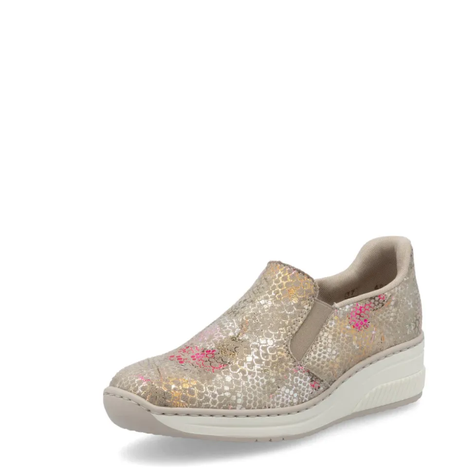 Lightweight, cushioned sole with wedge heel for a pleasant walking feel