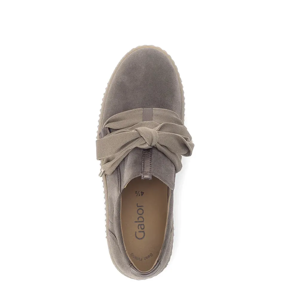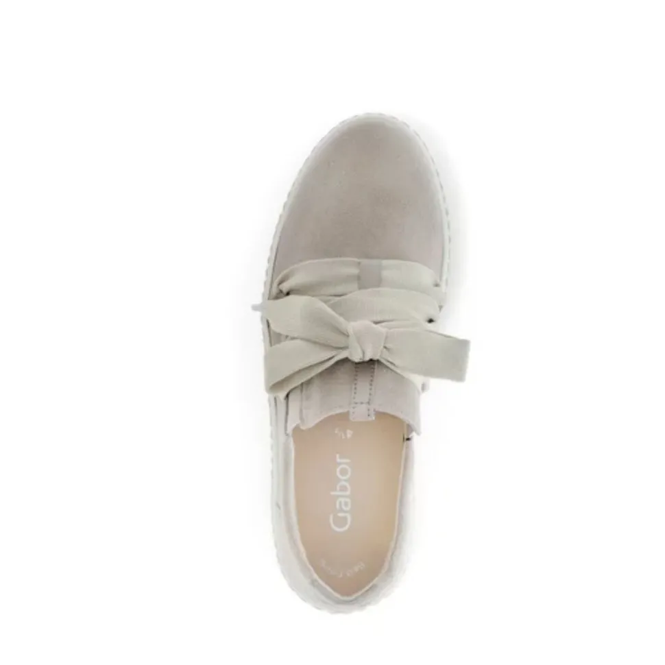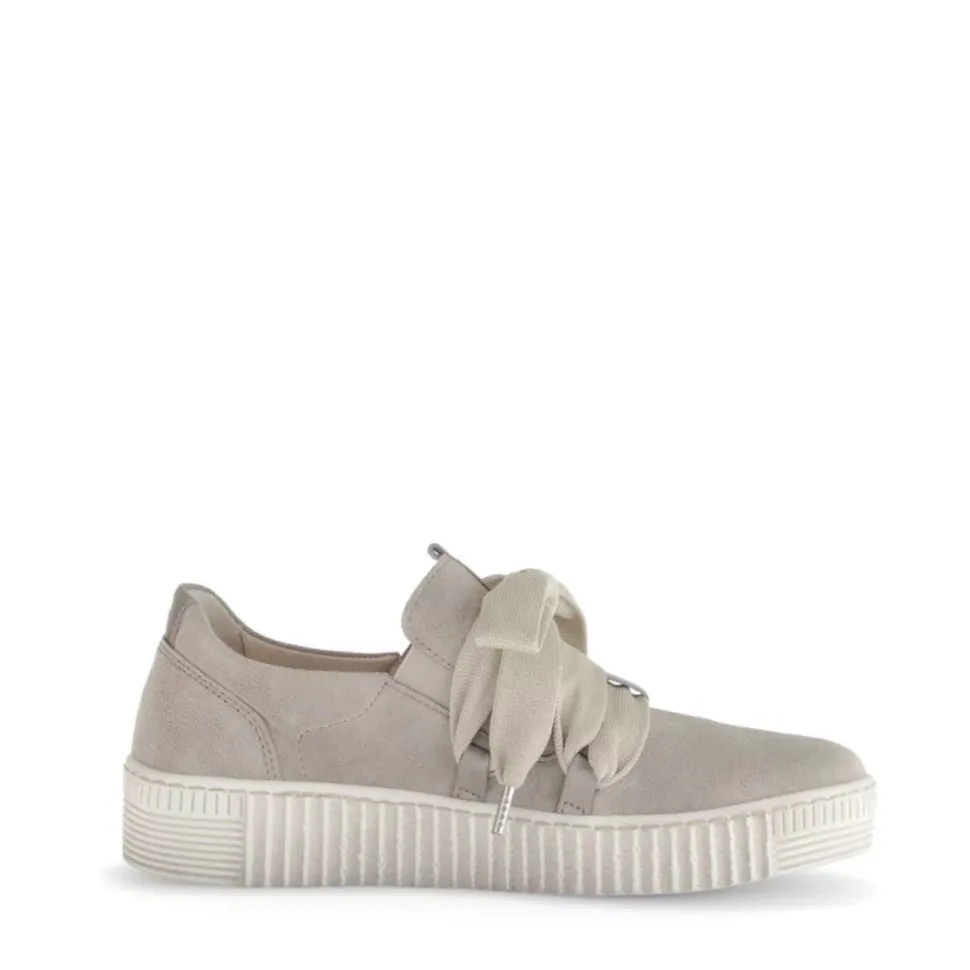 A perfect blend of style and comfort, this beige leather low shoe from Gabor is an everyday essential. Its premium leather upper, made from environmentally-friendly tanning, is combined with a leather lining for breathable comfort. Thanks to its Best Fitting last, it offers an enlarged forefoot landing surface, ideal for long-lasting well-being. The removable insole, partly made from recycled materials, rests on a 3.5 cm flat sole with a modern look. The wide elastic lace ensures a quick fit and a casual-chic look.