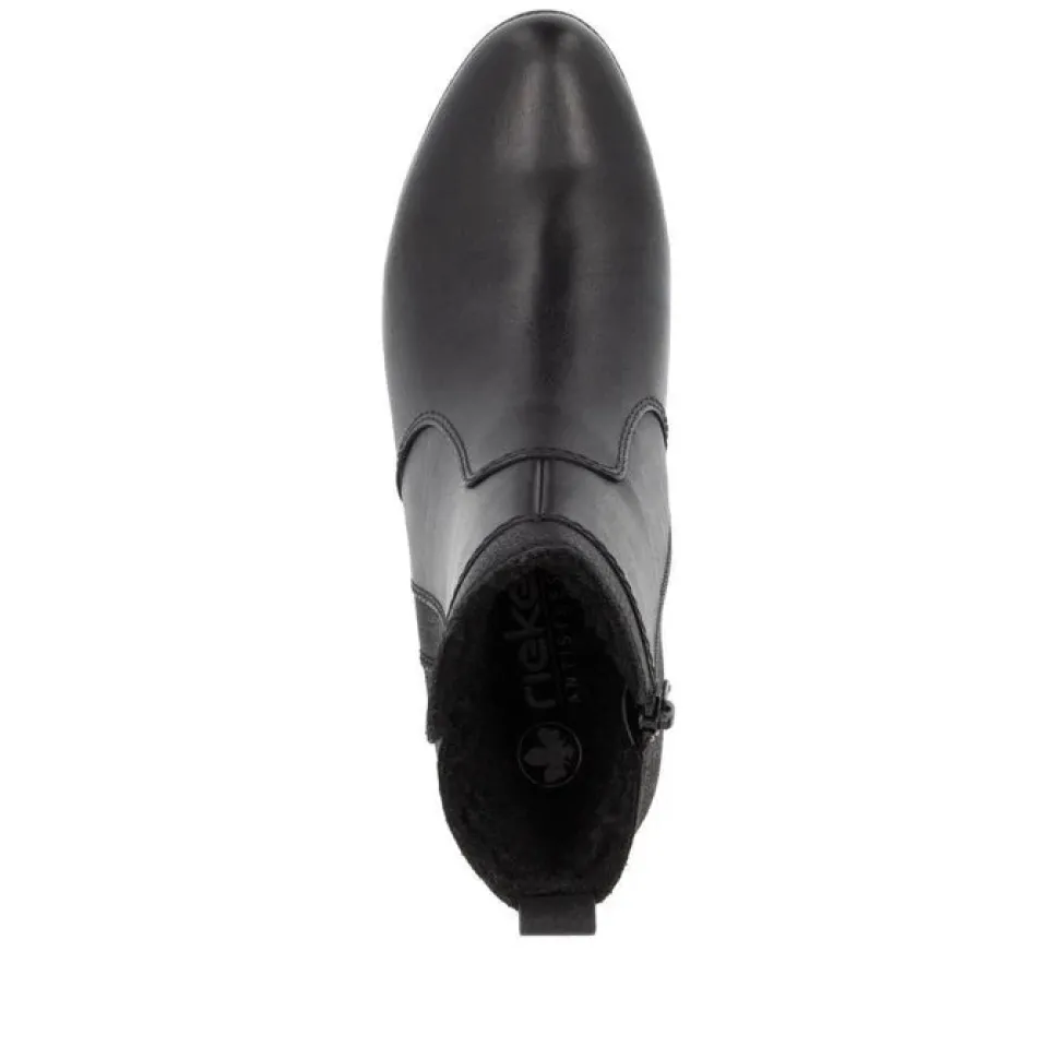 The Rieker 78658 is a chic yet comfortable bootie not to be missed this autumn. The upper is in black leather and has an easy-to-use side zipper for putting on and taking off. The bootie is lined with a short velvet fur lining on the inside to bring a little warmth to cooler days.