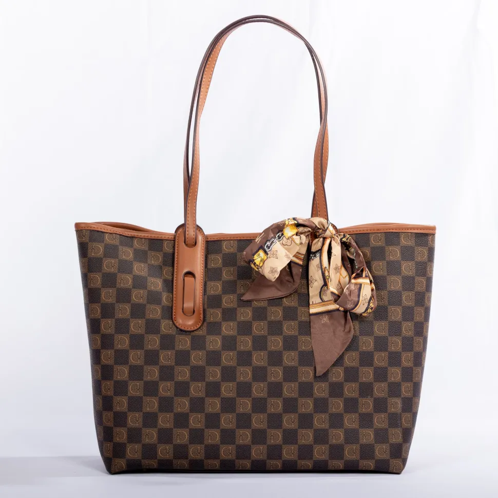 TheMiss Caprice ZEPHYRA 89087 tote bagcombines elegance and practicality in a timeless design. With its brown check pattern enhanced by the “MC” logo and camel-colored trim, it offers a sophisticated style that is equally suited to the office or a day out on the town.