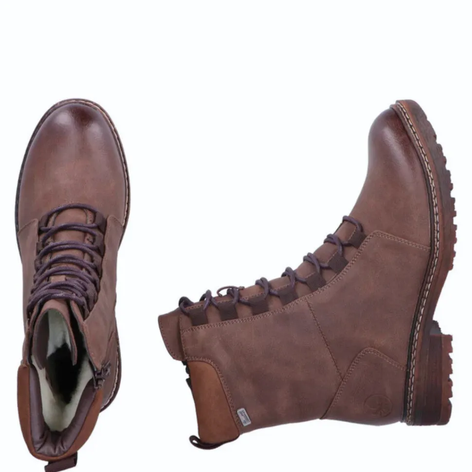 These boots combine style and practicality with front lacing and a side zipper for easy slip-on. Designed with RiekerTex technology, they offer good water resistance, ideal for wet days. Their low block heel and flexible sole provide comfort, stability and a touch of style for everyday wear.
