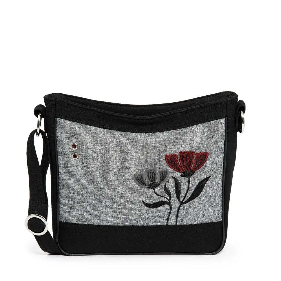 This classic shoulder bag is embellished with a delicate embroidery of appliquéd flowers and is sure to win you over! Its organizer pocket on the back is ideal for storing your cards, change and personal belongings. Its clean lines give it a timelessly elegant look.