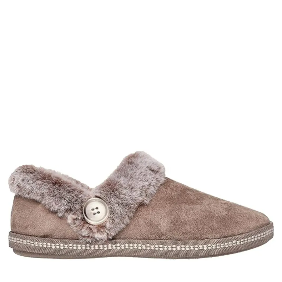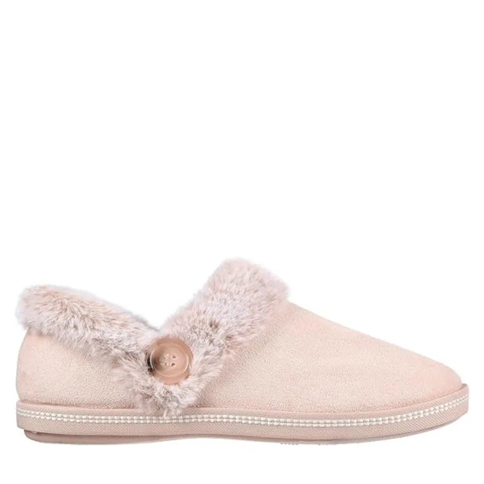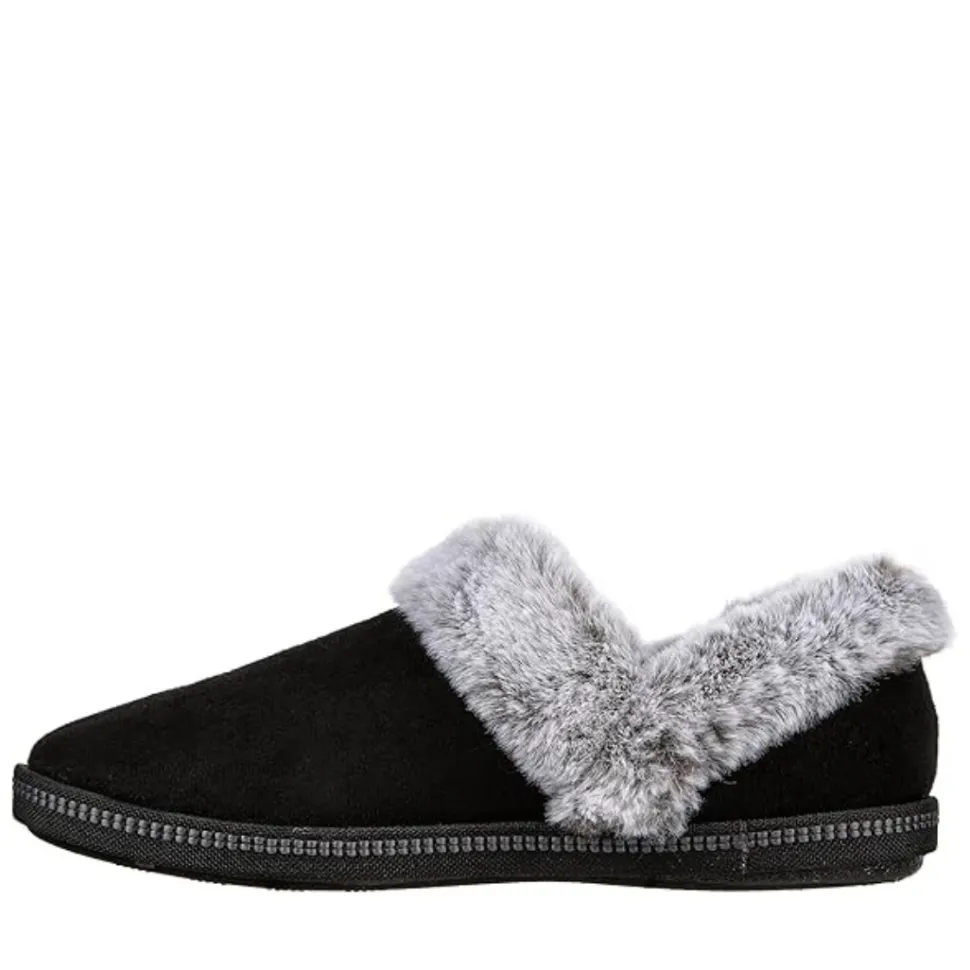 - Contrast faux fur collar and instep trim