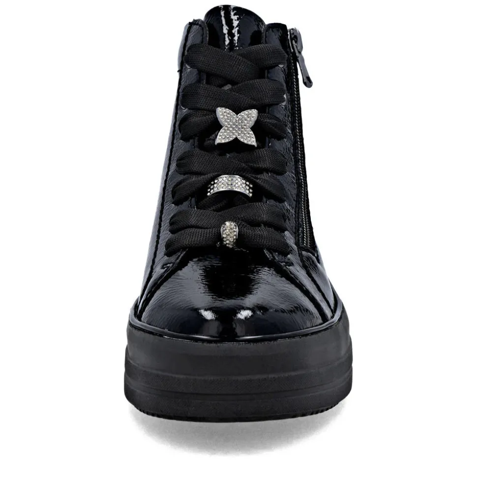 The D1C72 model seduces with its perfect blend of urban elegance and absolute comfort. Designed for active women looking for both style and everyday comfort, this patent leather bootie adds a modern touch to all your outfits. Thanks to its adjustable lacing and inside zipper, it’s easy to slip on and adapts perfectly to your feet. Ideal for fall and winter, its lightweight sole offers good grip and pleasant cushioning, even on long walking days.