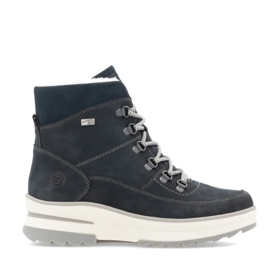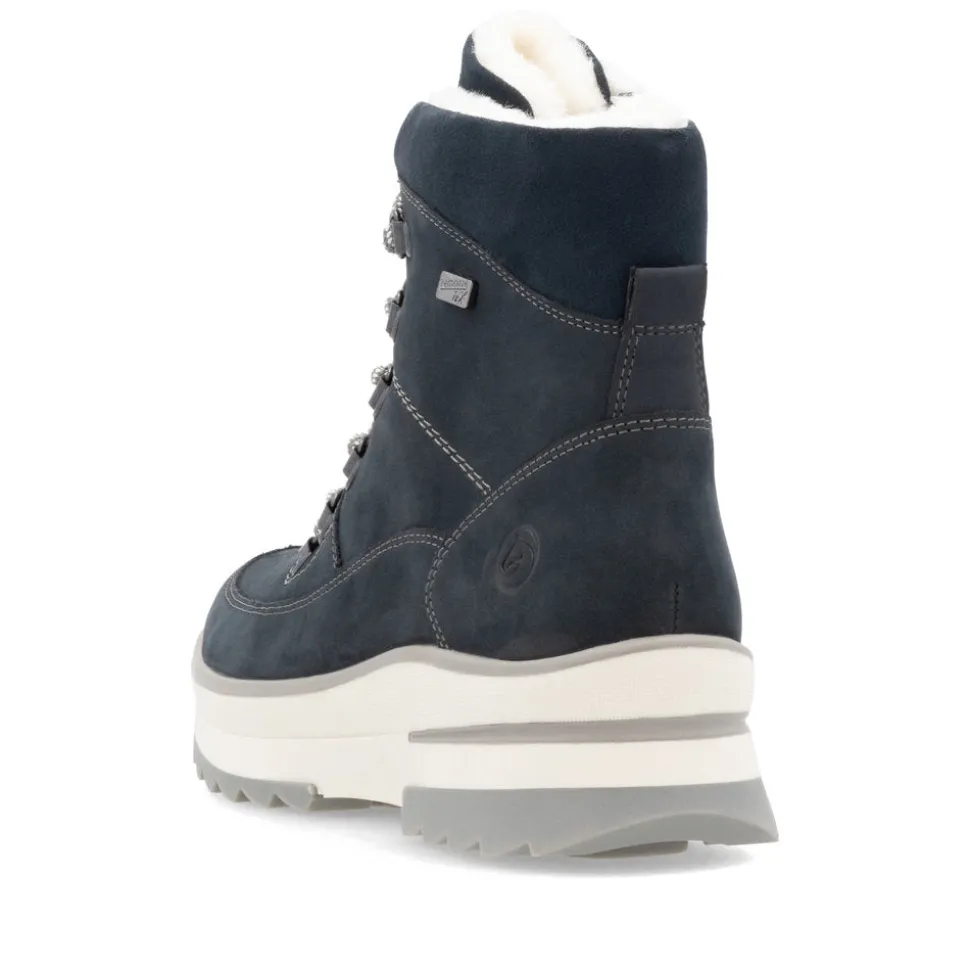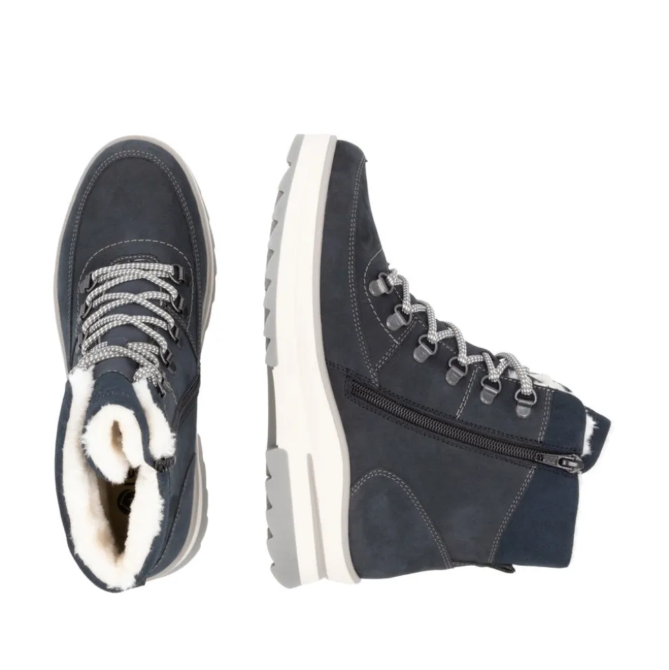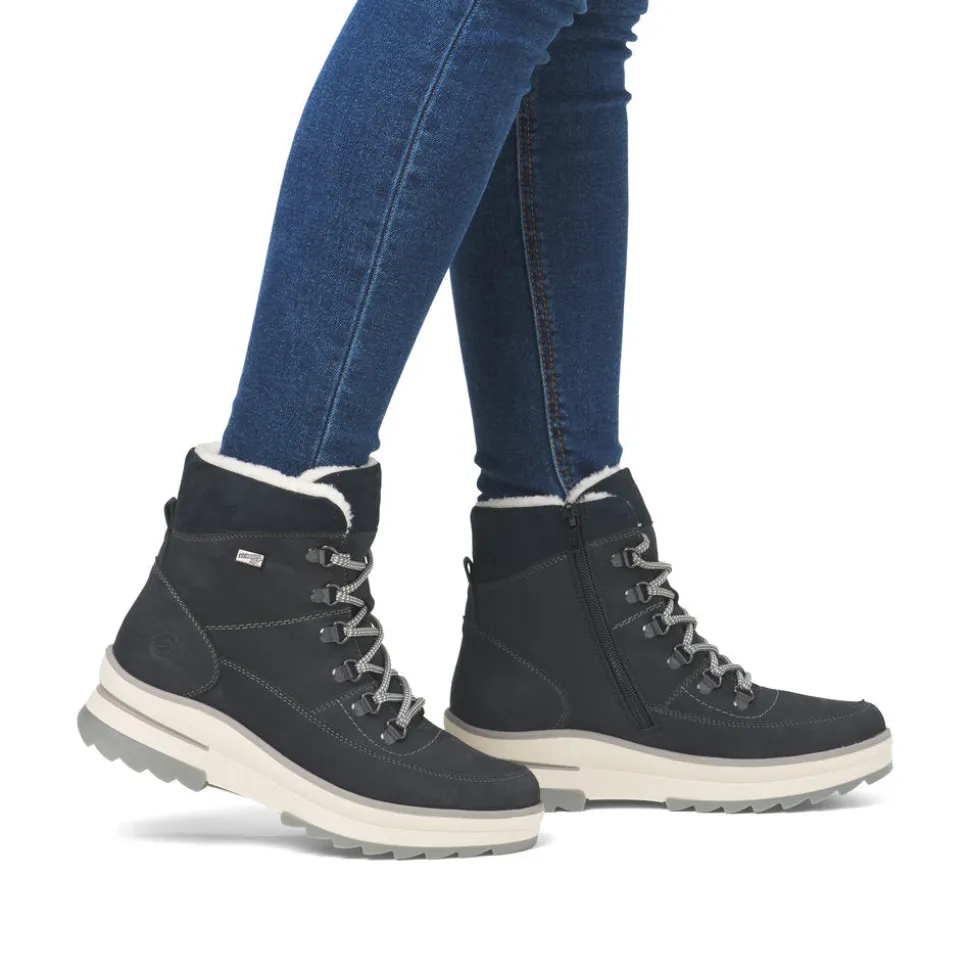 Happy feet, happy life! These steel-blueRemonte suede lace-up boots are designed to provide warmth, comfort and style throughout the cold season. The interior is lined with cozy, super-warm virgin wool, providing incomparable comfort even in low temperatures.