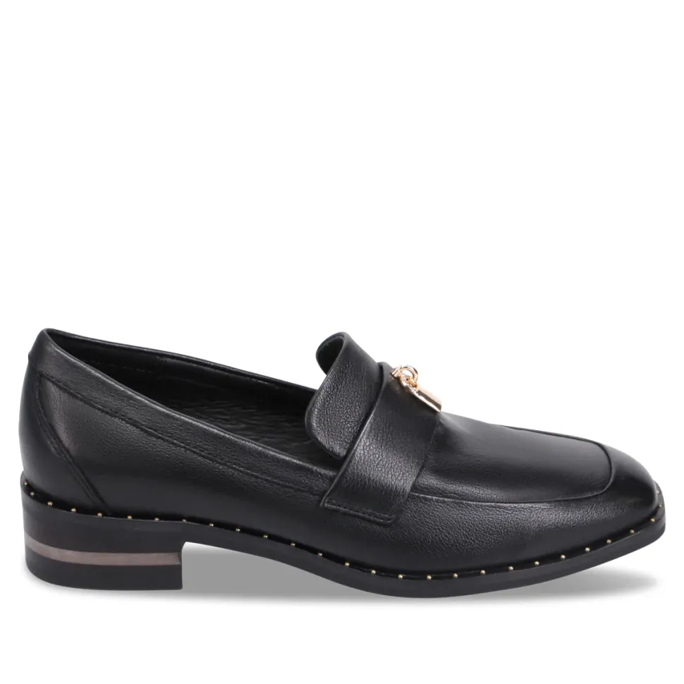 Elegance and timelessness define Fillipia, a moccasin that adds a neat touch to all your outfits. With its clean lines, structured silhouette and refined strap adorned with a discreet metallic detail, it embodies casual, controlled elegance. Its small block heel, highlighted by a stacked effect, offers just the right amount of height while ensuring lasting comfort. A refined choice, as perfect for the office as for your casual looks.