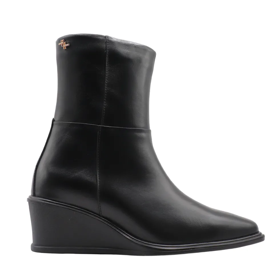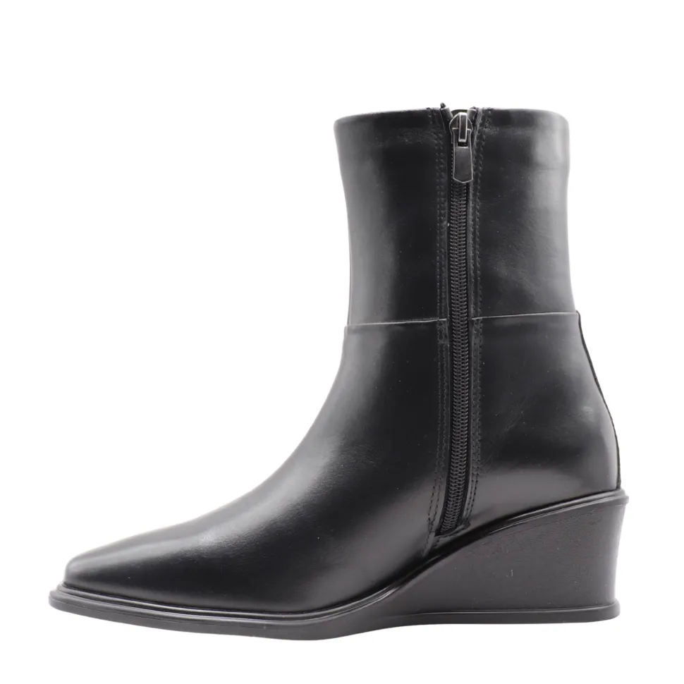 Isabella boots by Apropo combine elegance and comfort thanks to their minimalist design and wedge sole. Crafted in genuine leather, they feature a streamlined silhouette and a flattering height that elongates the leg while remaining comfortable to wear. A side zipper ensures practicality and support.