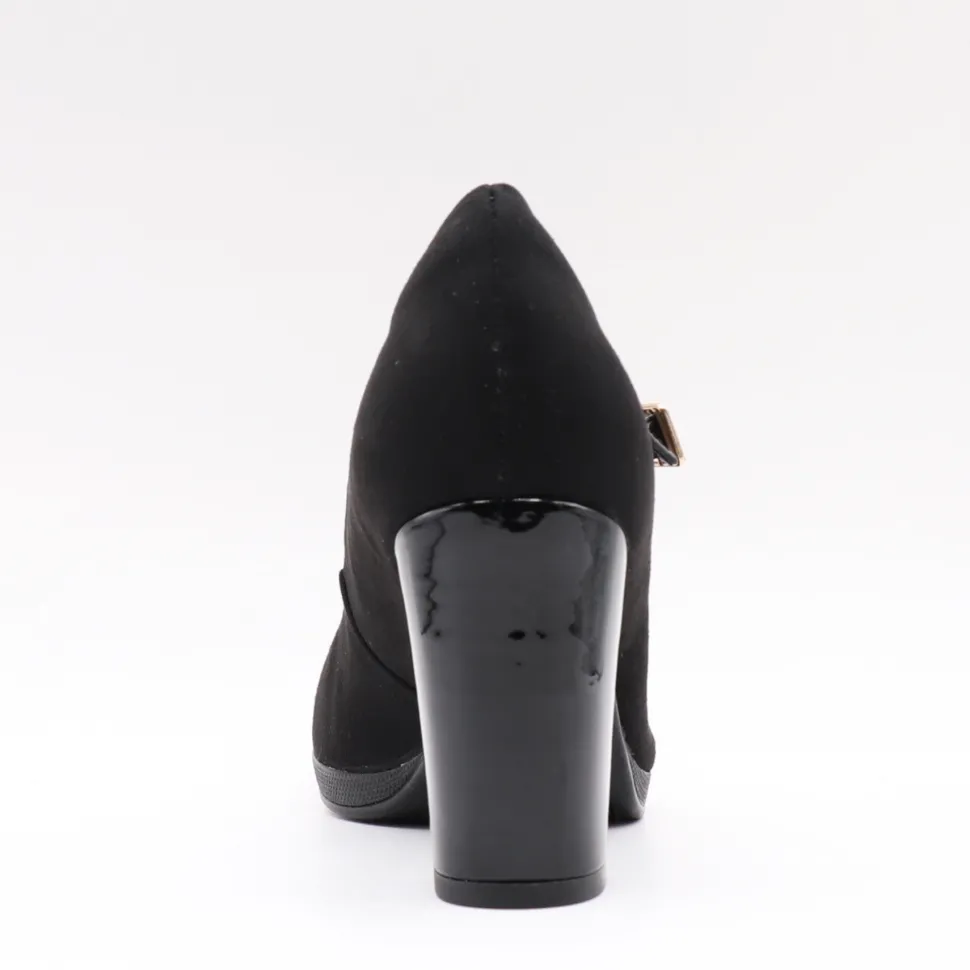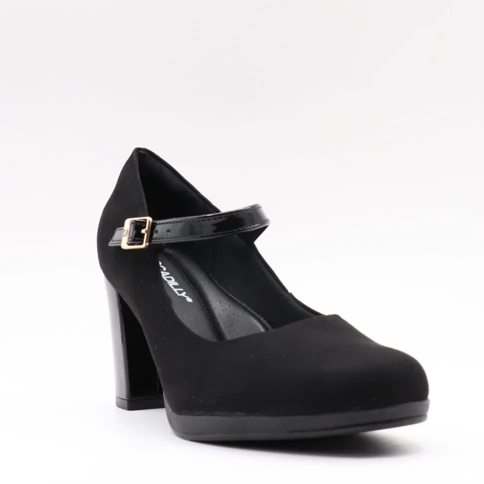 Classic style revisited. This Piccadilly pump combines elegance and comfort with its block heel and adjustable strap for optimum support. Its refined black finish and feminine allure make it a versatile shoe, ideal for both the office and formal outings.