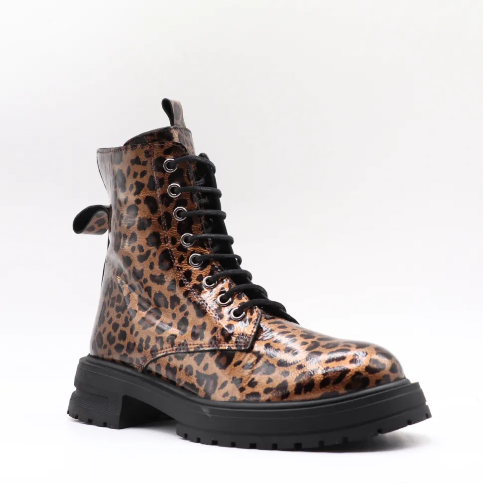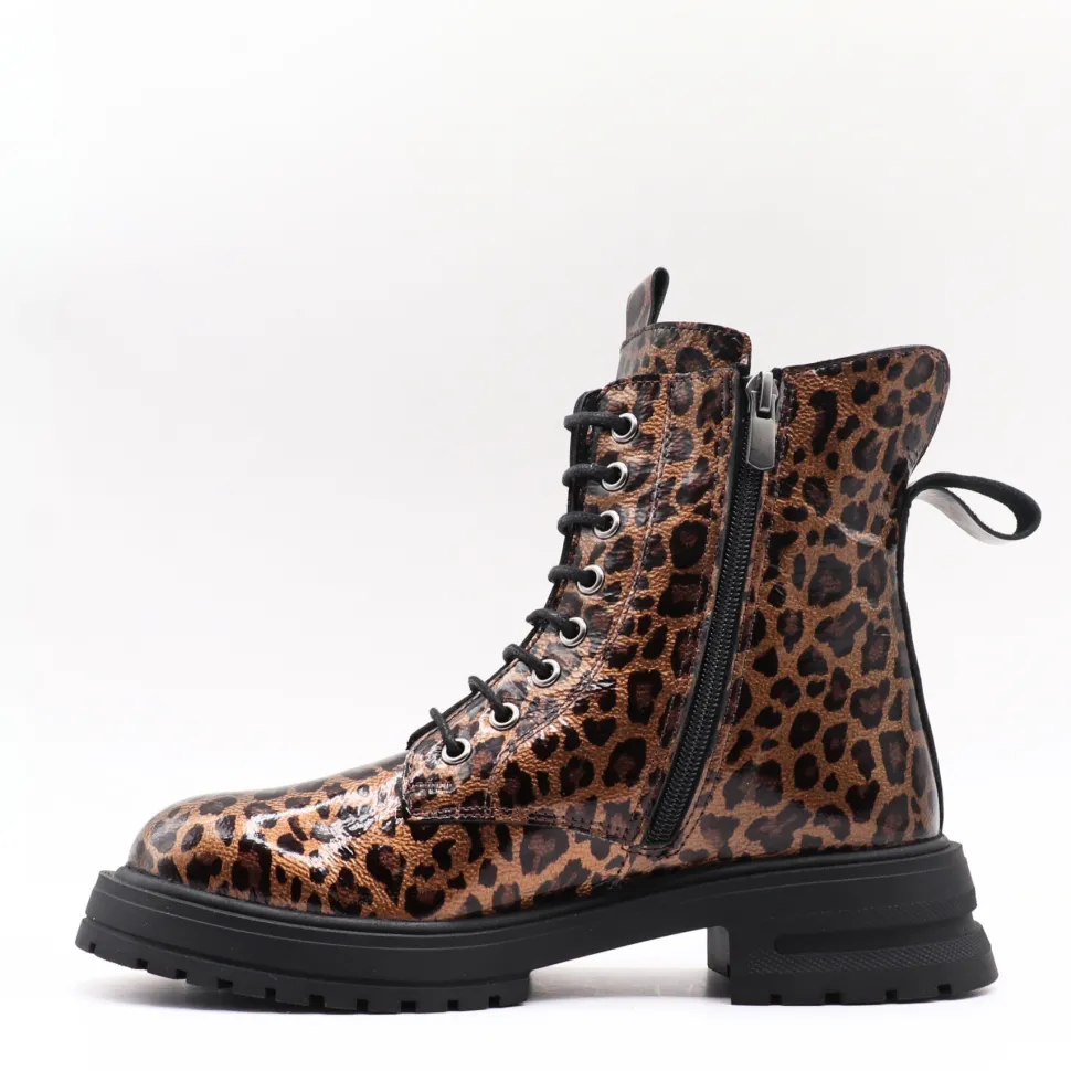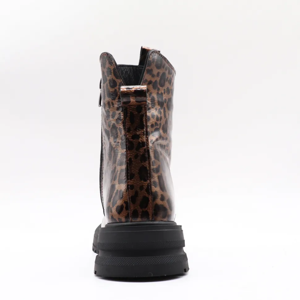 Bold and on-trend,Apropo ‘s Lazra boot features patent leather and a lace-up silhouette. Available in classic black or leopard print for an assertive style, it combines comfort and contemporary allure thanks to its sturdy notched sole. Made in Europe from quality materials, they’re the perfect boot for those who want to combine fashion with everyday functionality.
