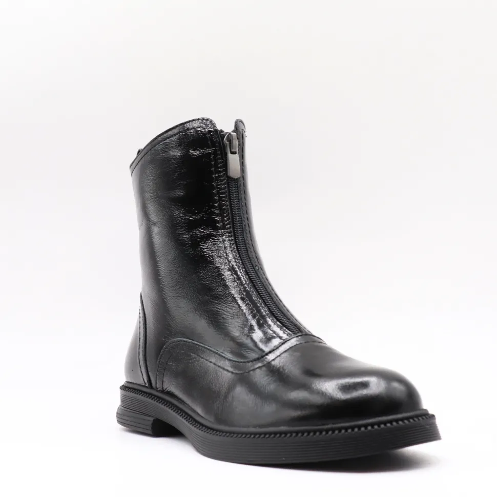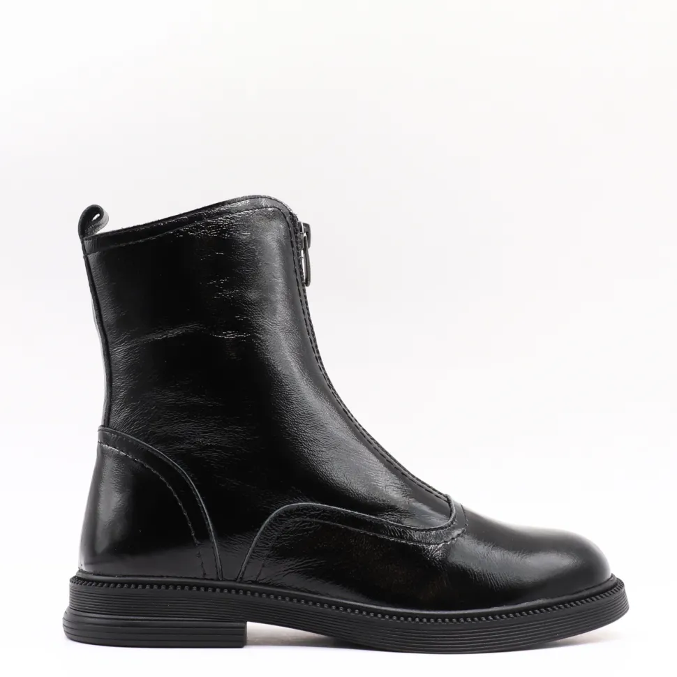 With its patent leather and sleek silhouette,Apropo ‘s Lima boot brings a sophisticated, contemporary touch to your looks. Made in Europe, they combine comfort and elegance thanks to their slim fit and practical front zipper. A versatile model that’s easy to wear every day, with both dressy and casual outfits.