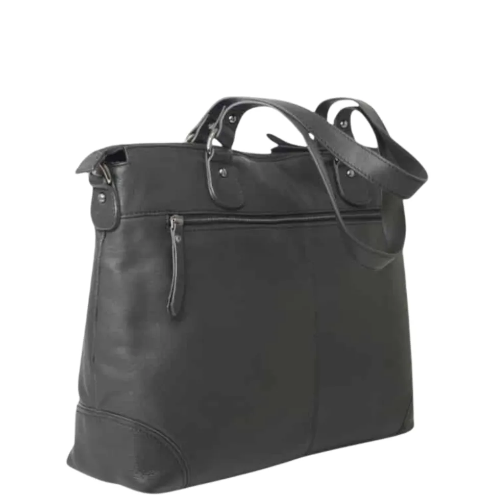 The LIQUIRIZIA tote bag from The Trend combines elegance and functionality in a genuine Italian leather design. With its large capacity and thoughtful compartments, it’s ideal for the office, travel or everyday use. Its padded pocket protects a 15″ laptop, while the embossed logo on the front adds a touch of sophistication.
