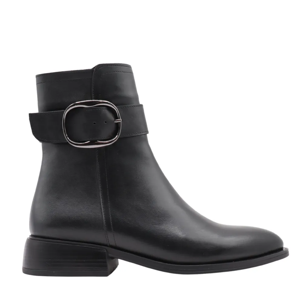 Elegant and timeless, Margot ankle boots by Apropo Margot boots are a seasonal essential. Crafted in genuine leather, they feature a large metal buckle that adds a modern, refined touch to their sleek silhouette. The internal zipper ensures quick slip-on, while their low block heel guarantees optimal everyday comfort.
