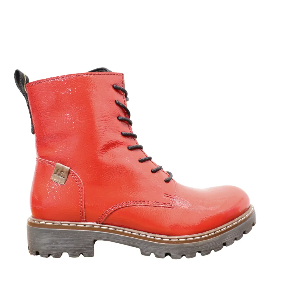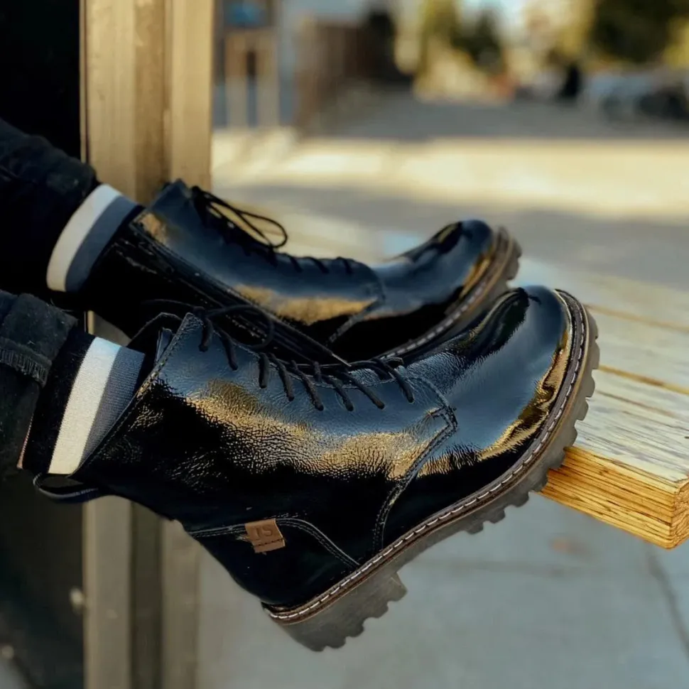 “All the retro style, without the weight of thick soles. Our patent leather combat boot is ultra-light and flexible.
