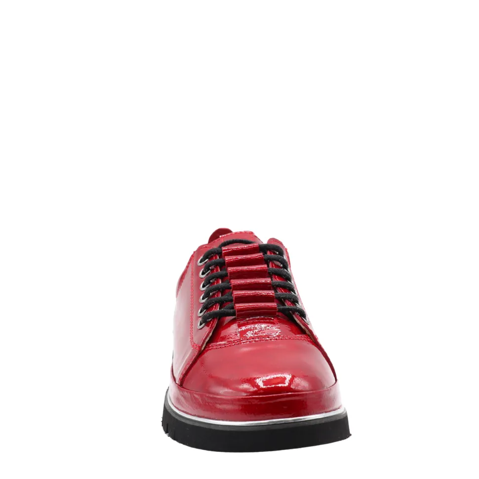 Combine boldness and comfort with Maude, Apropo’s patent leather sneaker. Available in deep blue and vibrant red, this model revisits the classic sports shoe with a touch of shine and sophistication. Its thick, supple sole ensures lasting comfort, while metal eyelets and patent finish give it a modern, urban look.