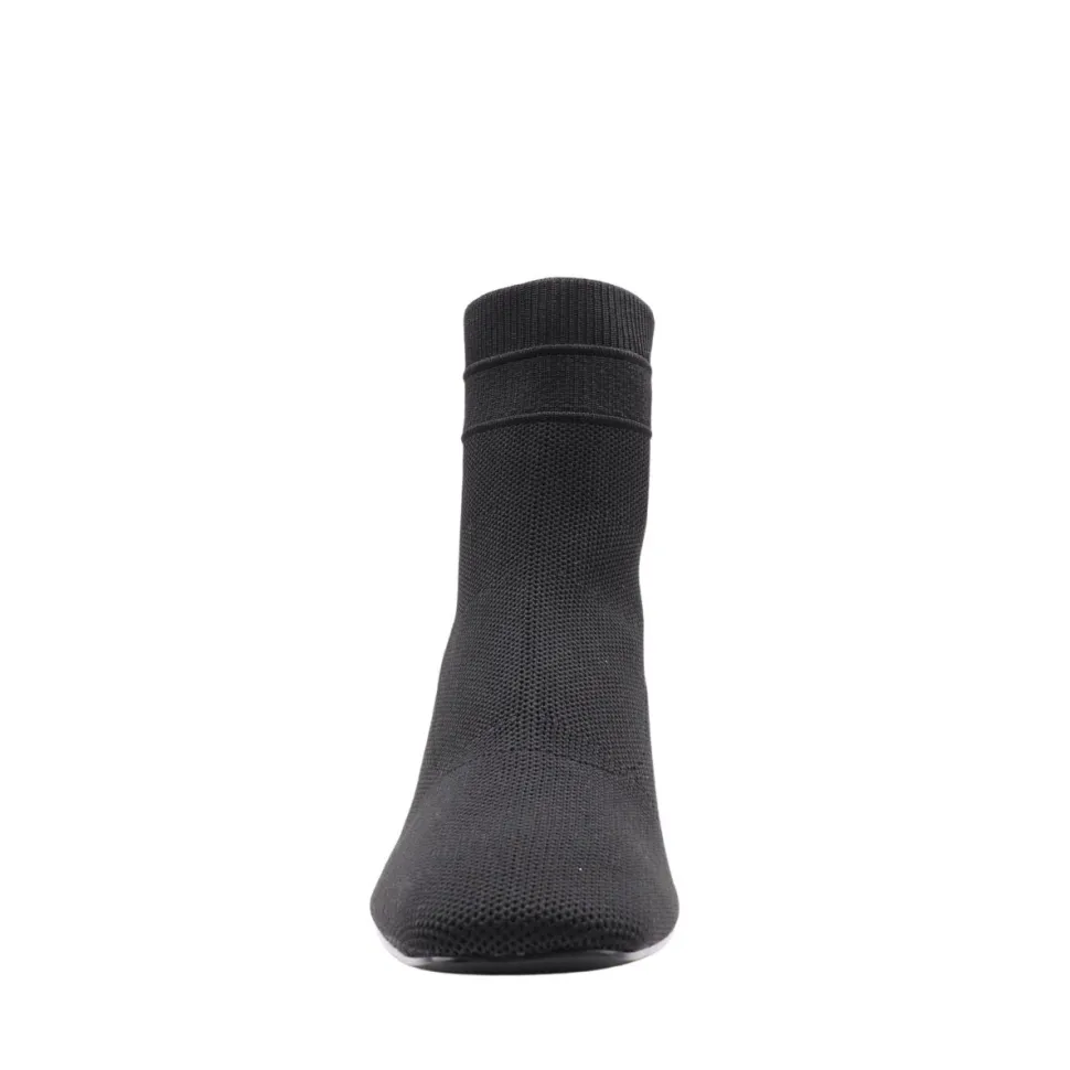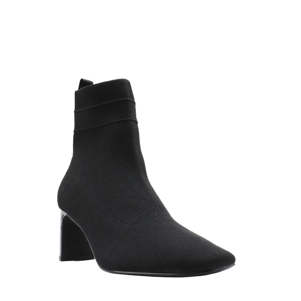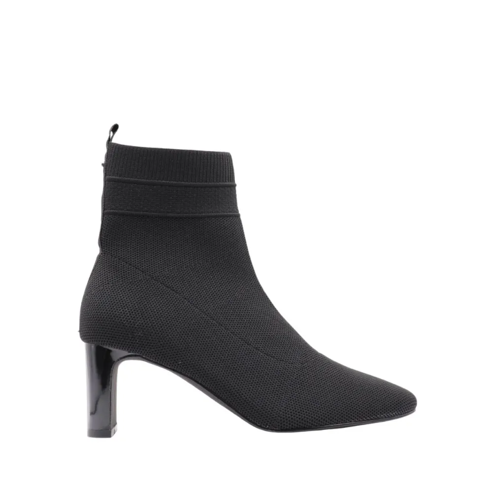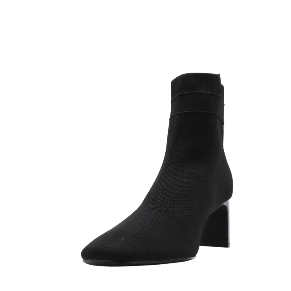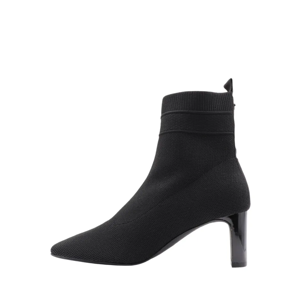 Add a sophisticated touch to your style with the Miranda bootie fromApropo. Crafted in black textured fabric, it seduces with its slim silhouette, pointed toe and minimalist design. Its generously high, shiny block heel combines assertive elegance with stability, while the discreet tongue at the back makes it easy to slip on. Versatile, they’re equally at home with everyday outfits and dressy looks, making this boot a seasonal staple.