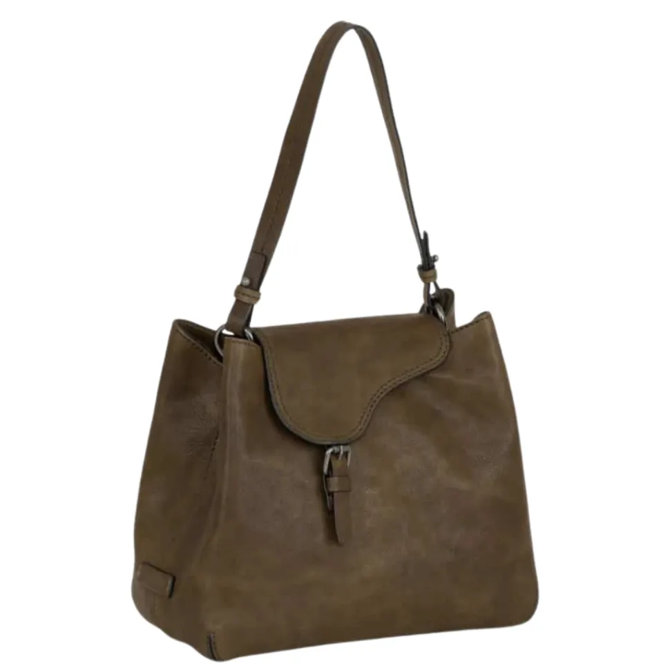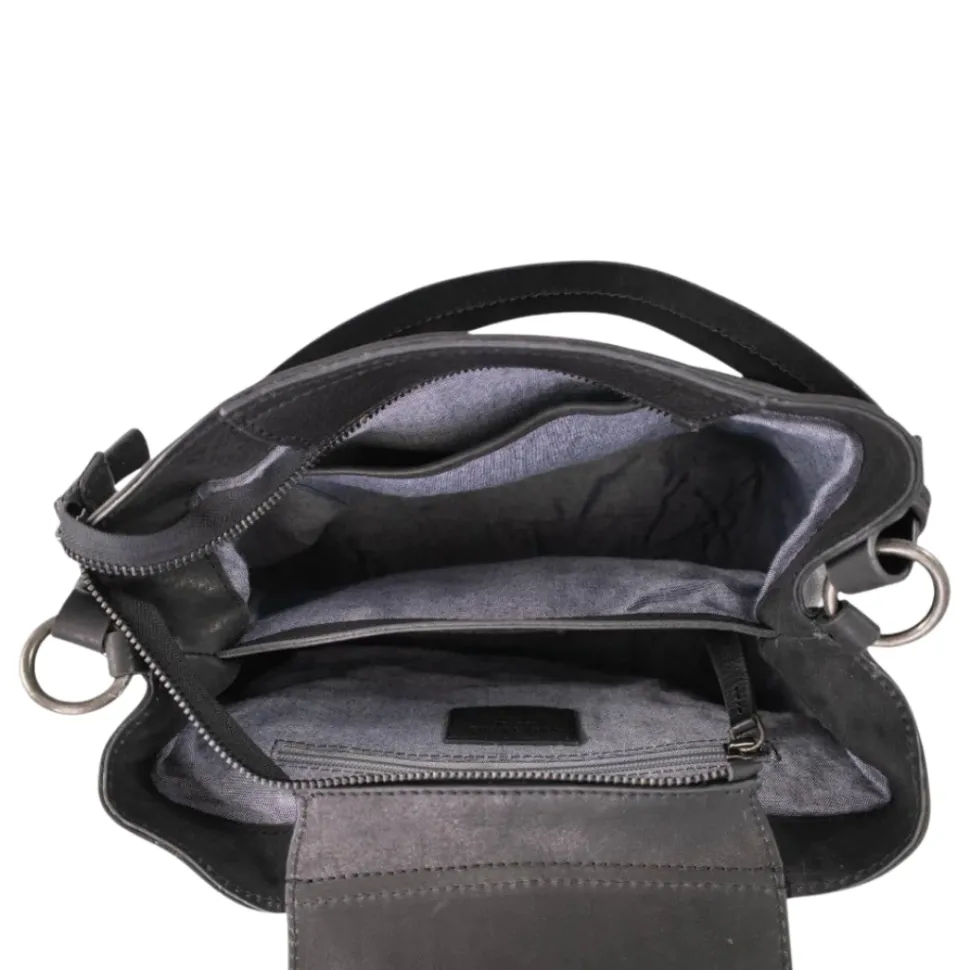 - Decorative flap with magnetic closure covering main compartment