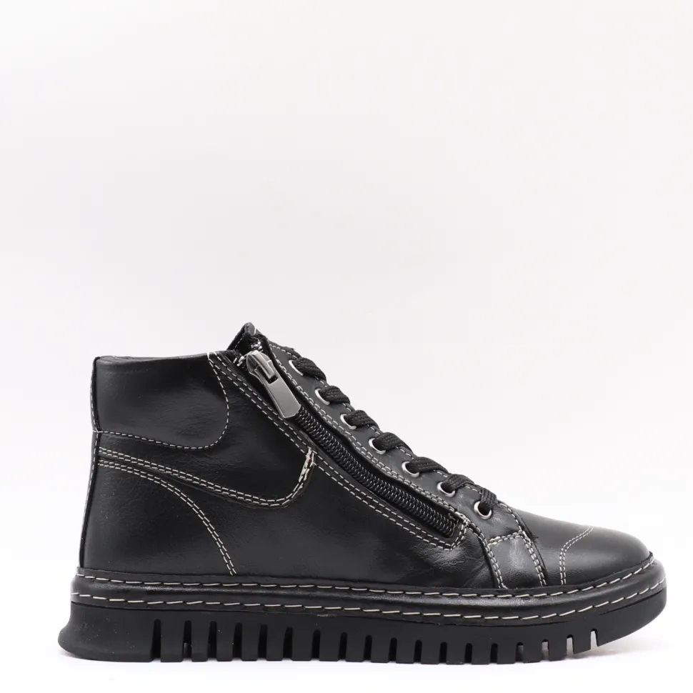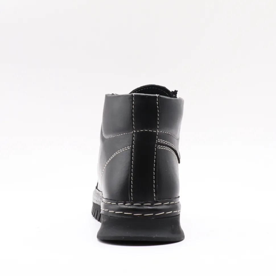 practical. Designed in genuine leather and made in Europe, it offers a casual look with contrasting stitching and a flexible sole with deep grooves for better grip. Featuring a side zipper, they’re easy to slip on for everyday wear. Available in timeless black or natural leather, it’s a versatile shoe that combines style and functionality.